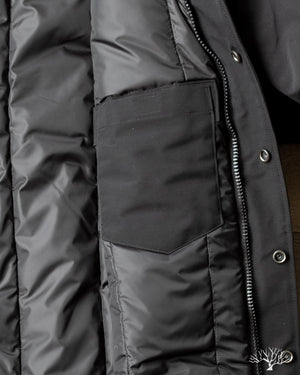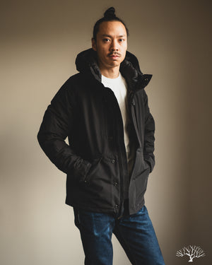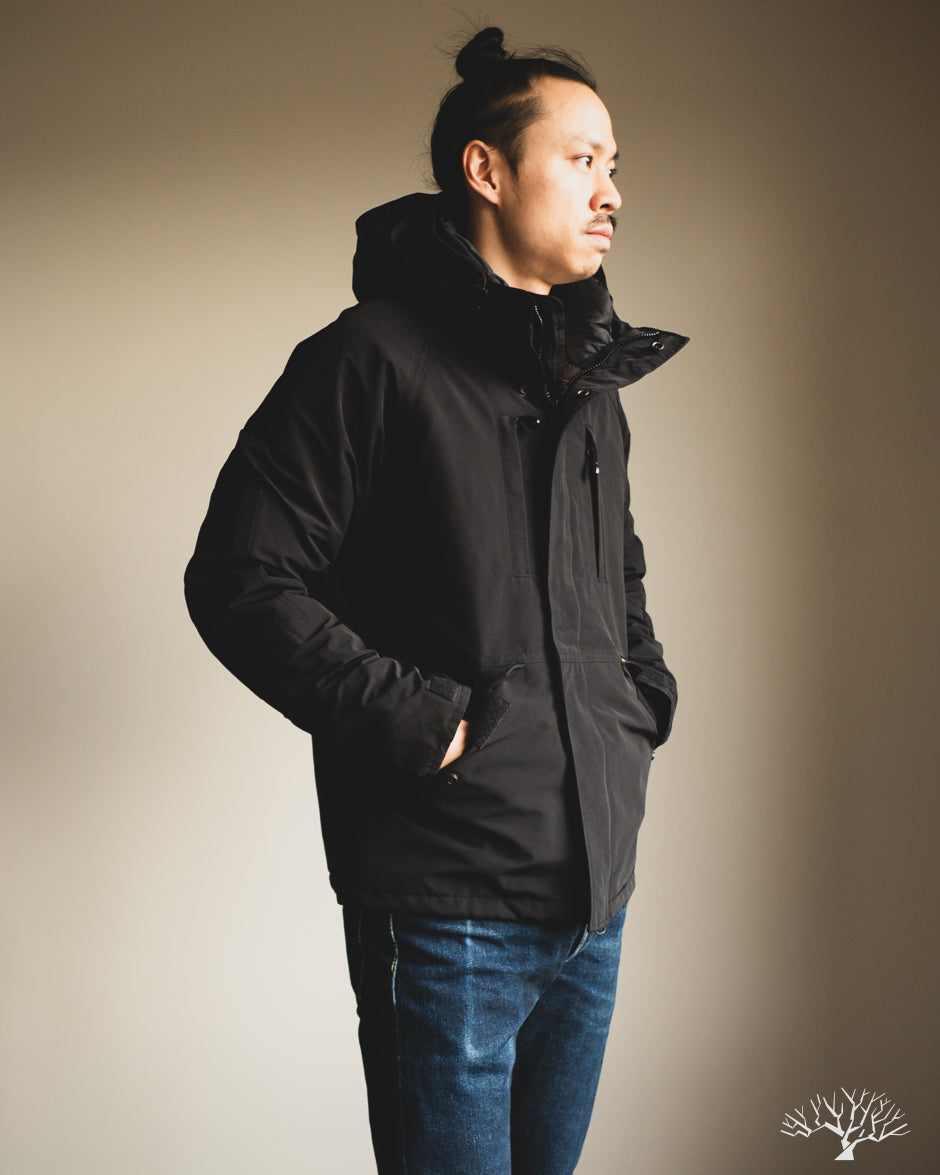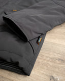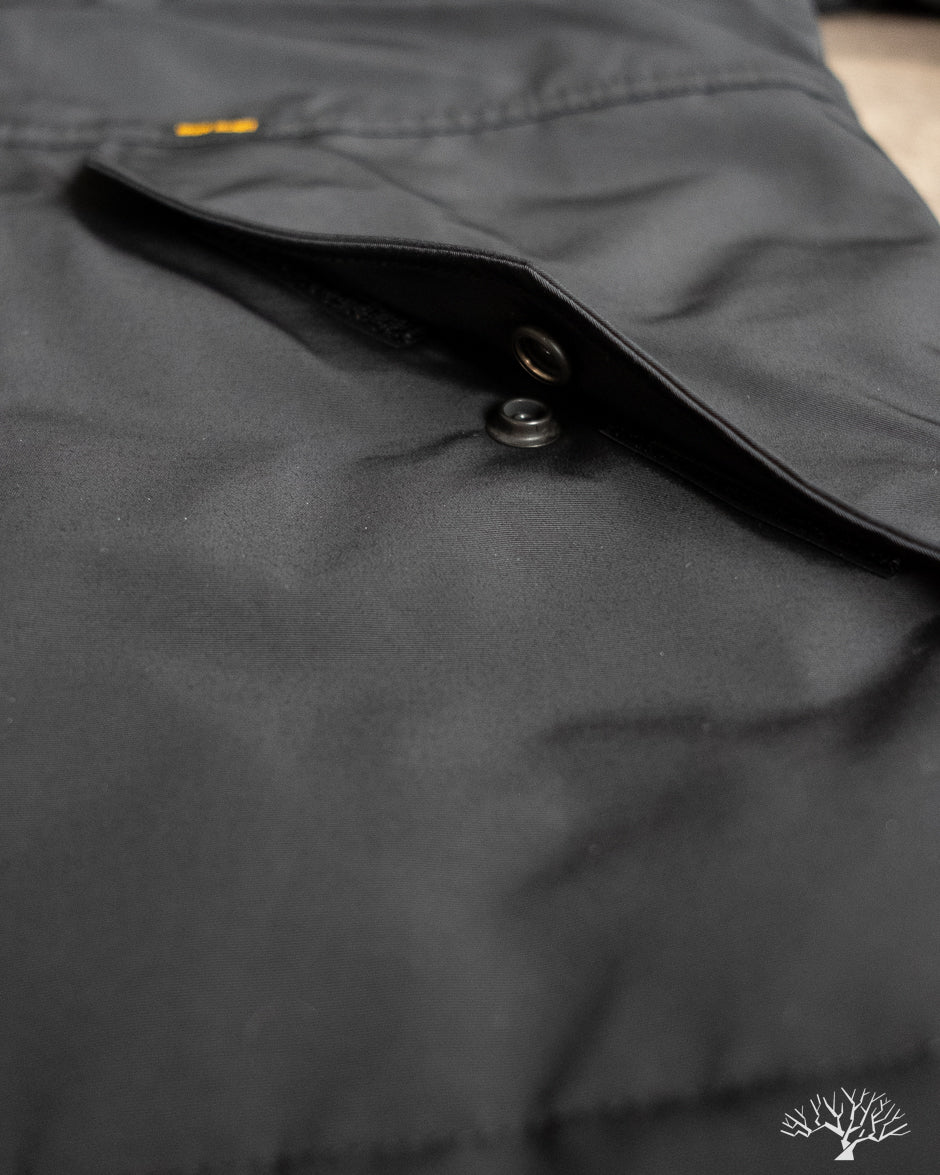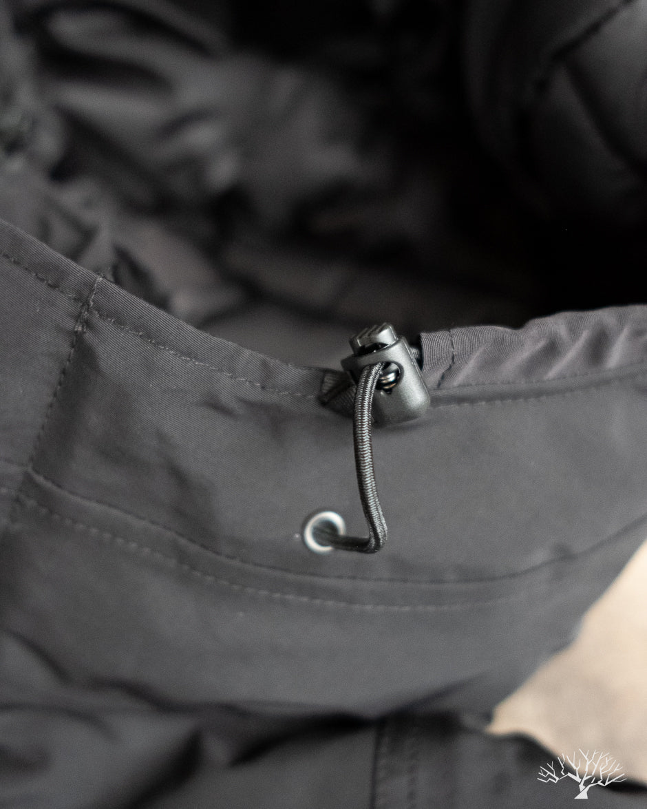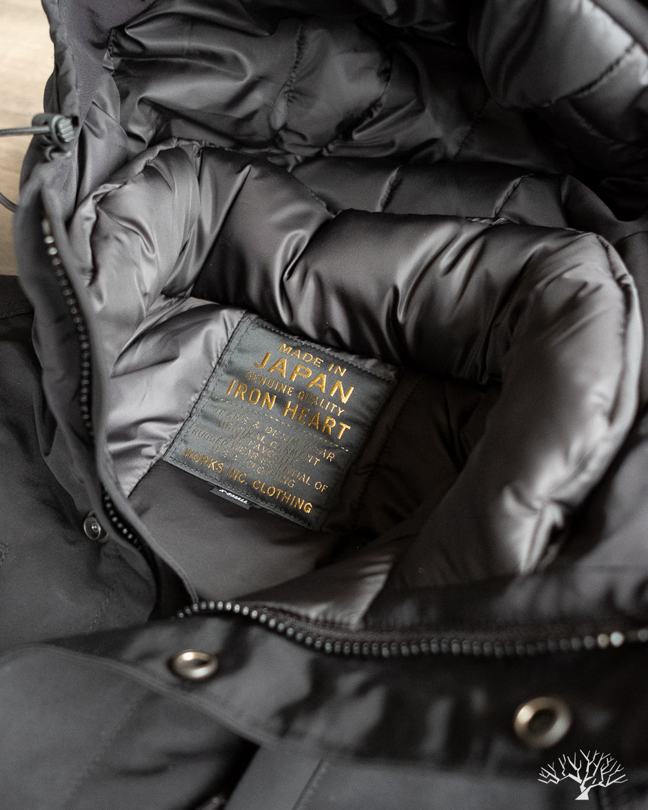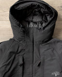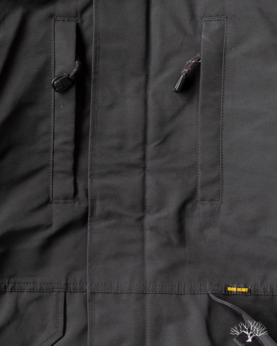 The Iron Heart Mountain Parka is a formidable technical outer piece that rivals any of the mainstream outerwear companies out there. This IHJ-75-BLK is the Blacked out version featuring Primaloft Gold and eVent fabric, which provides insulation and waterproofing with breathability. Fully insulated with 100% nylon lining and a ribbed cuff at the end of the sleeves will help keep your body warm while stopping the wind. These can be adjusted in the hood and at the waist using the elastic draw cord for a custom fit.