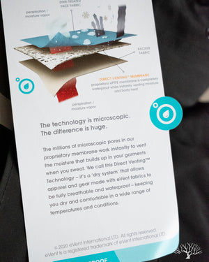 - Outer - eVent fabric is a patended waterproof and breathable membrane made from 60% cotton, 40% nylon