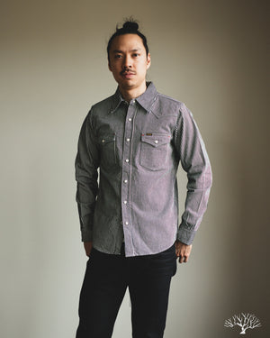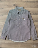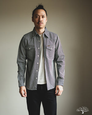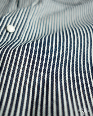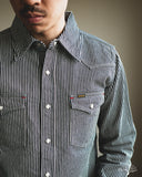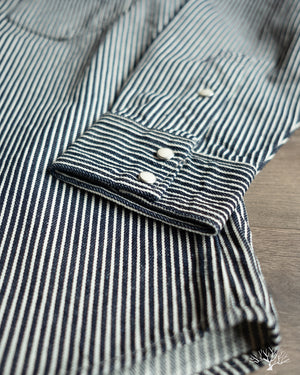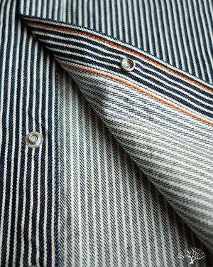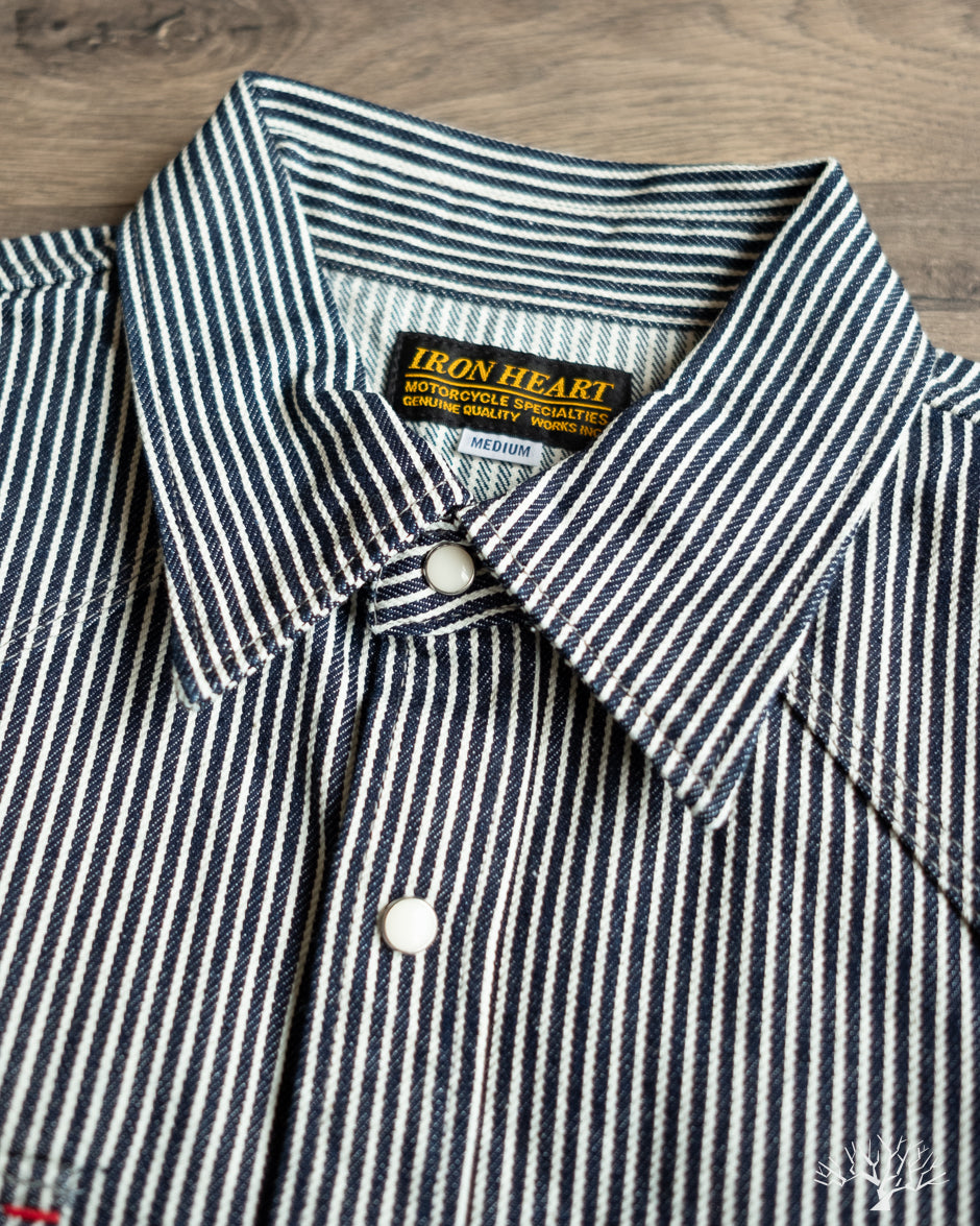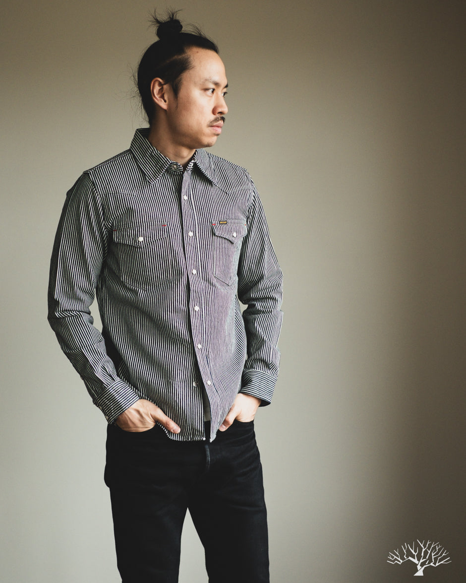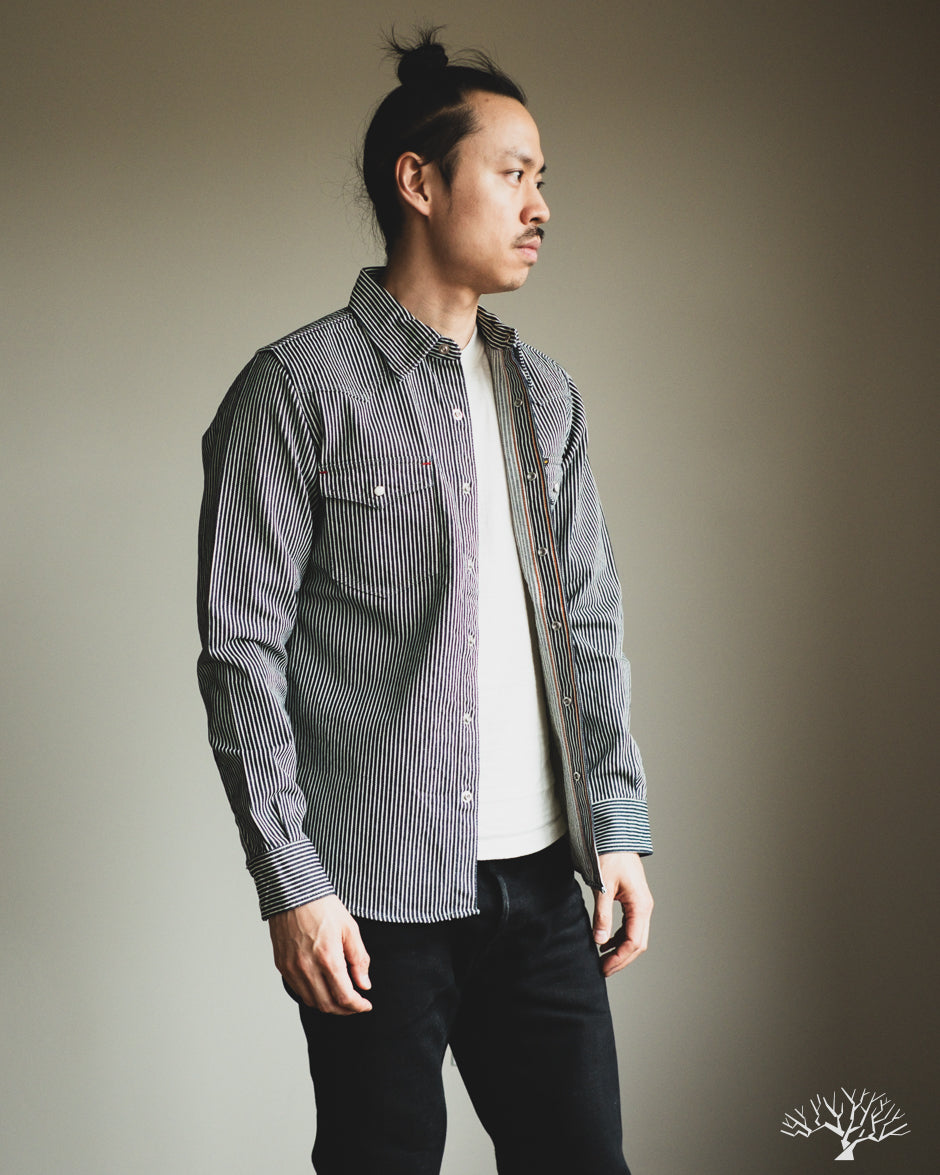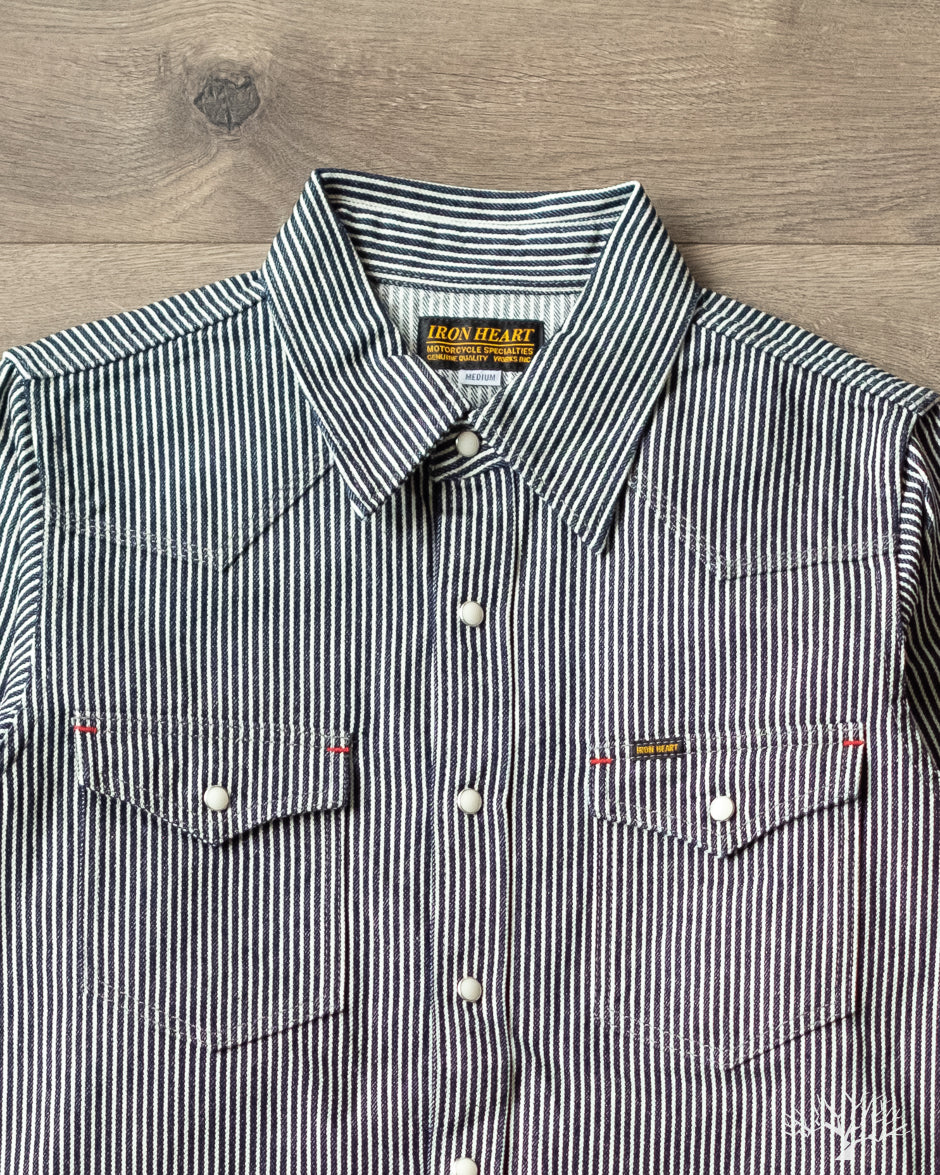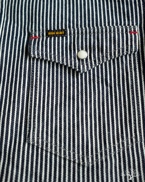 One of the original Iron Heart shirts in their lineup, the IHSH-07-IND Indigo Hickory Stripe Western Shirt is their longest running shirt still in production. This classic western styled shirt in a 12oz sulfur dyed hickory stripe cotton twill is simply timeless. A formidable 12oz weight makes this a great transition piece or for an extra layer (maybe size up) if you want to wear it more as an overshirt.