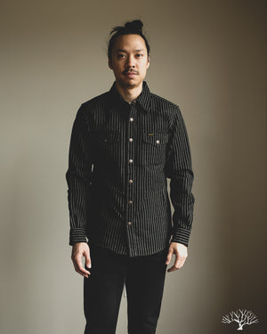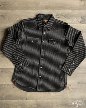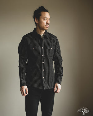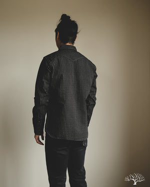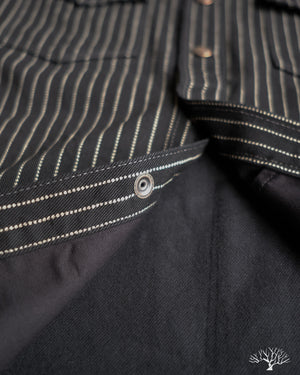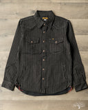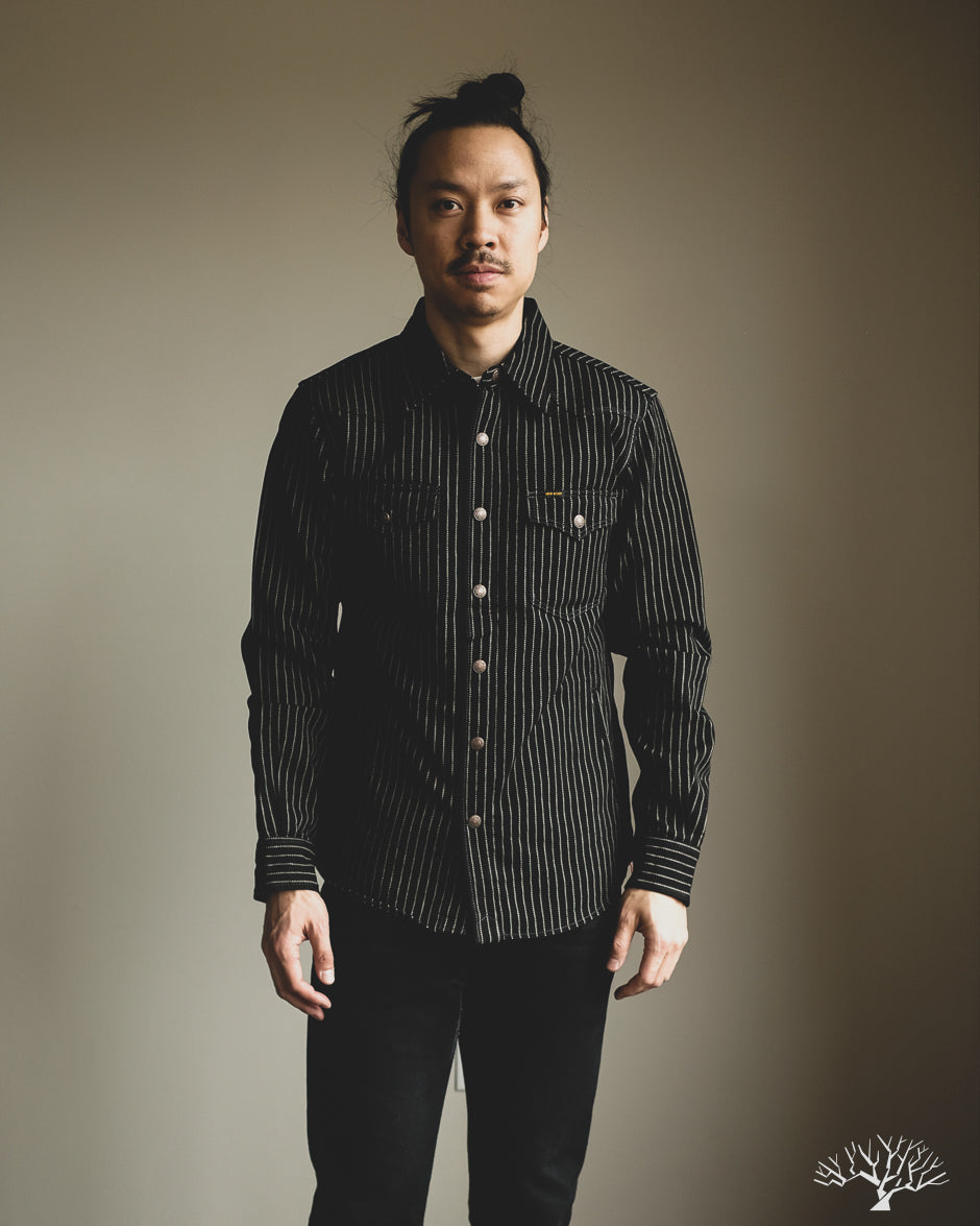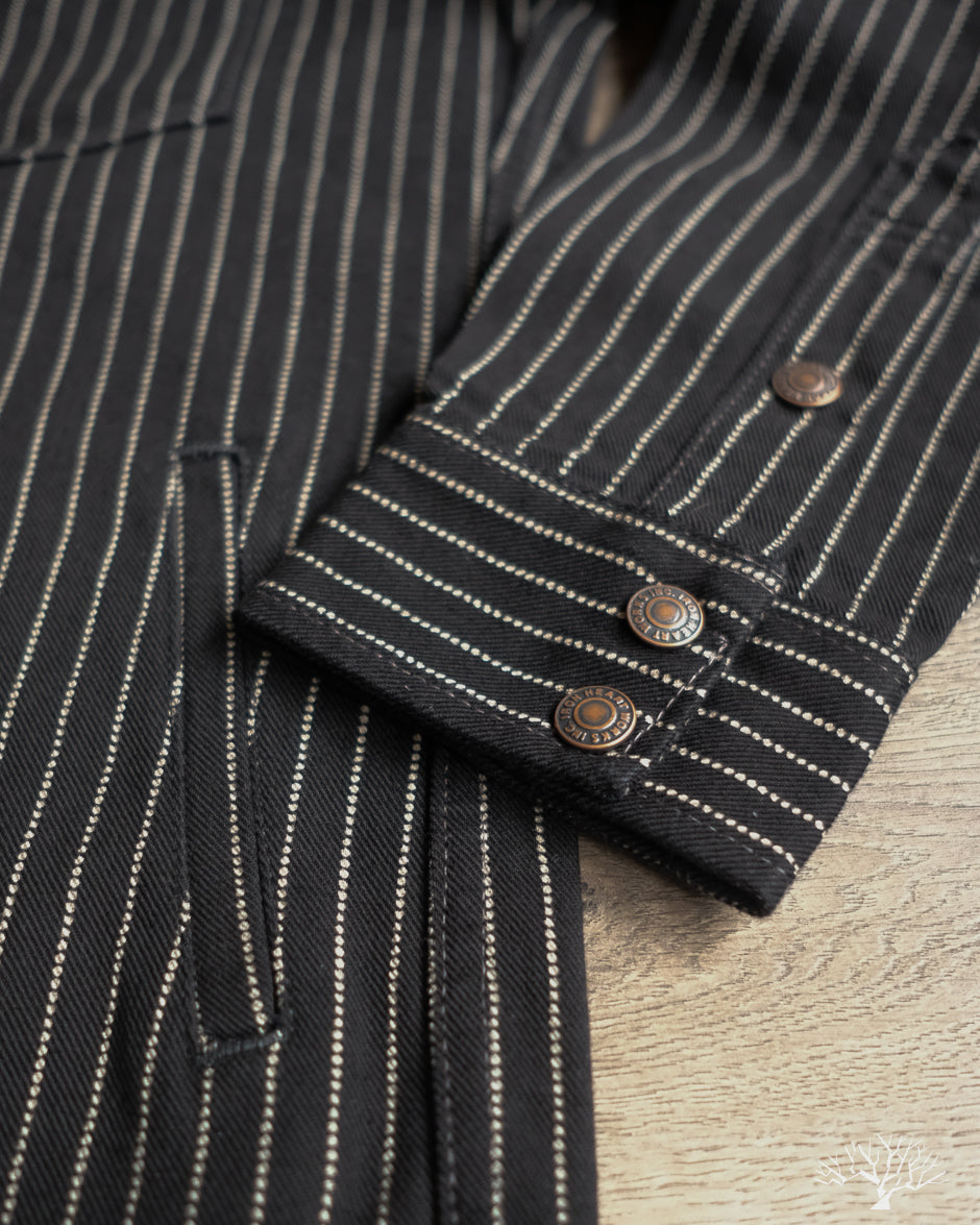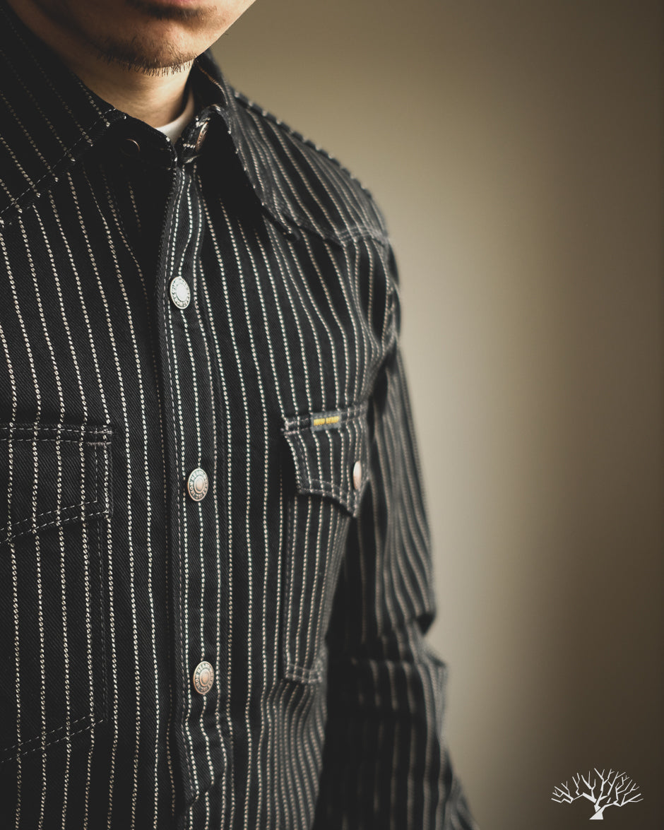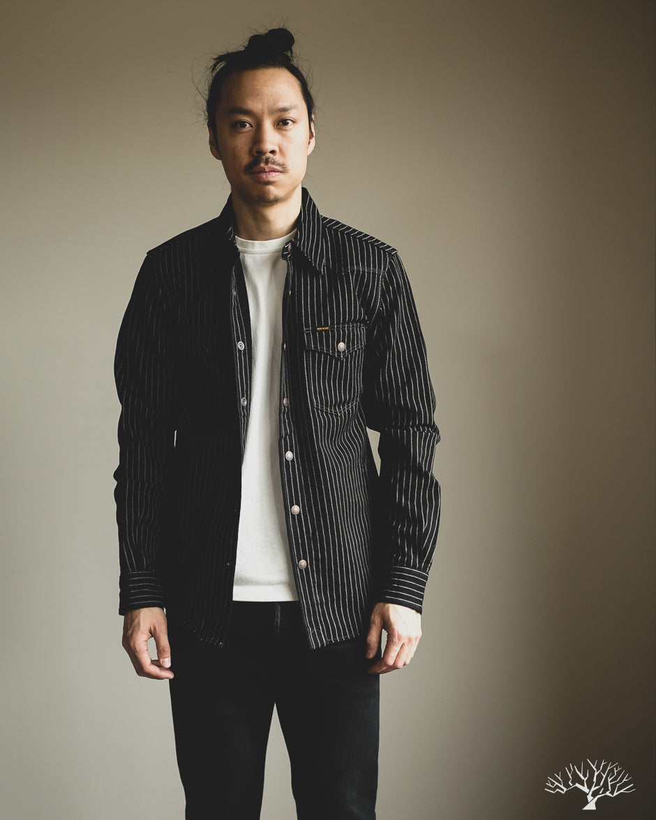 The newest addition to the Iron Heart 12oz Wabash family is this Black Wabash CPO Shirt. The Iron Heart Wabash fabric is known for its incredible fades that bring to life this vintage style hailing from the workwear days of the early to mid 1900s. Iron Heart uses a 12oz Black rope dyed Japanese wabash fabric that is sturdy in the hand but will soften up with wear. This CPO Shirt version comes with a slightly longer body, side entry handwarmer pockets, and oversized copper button snaps.