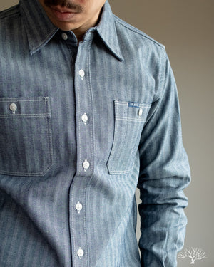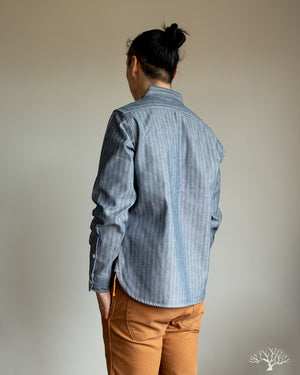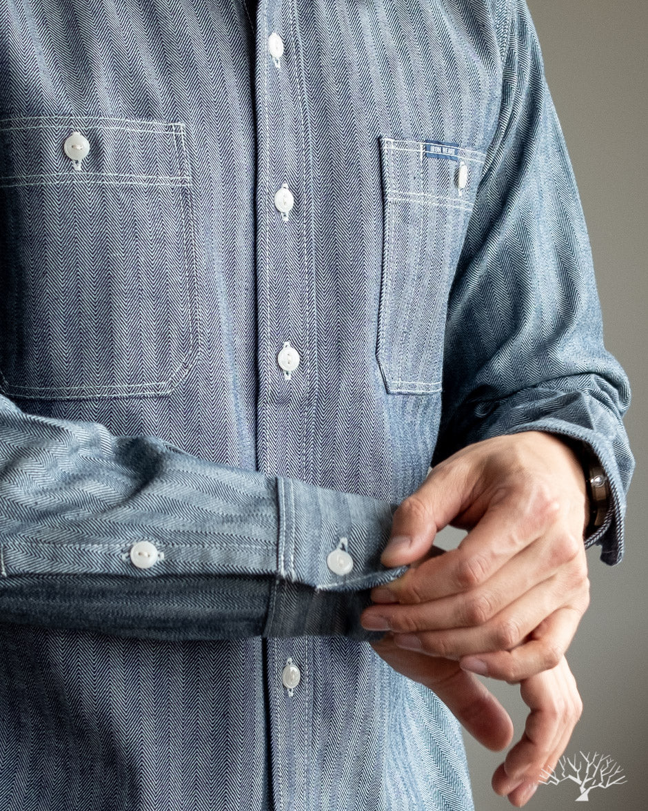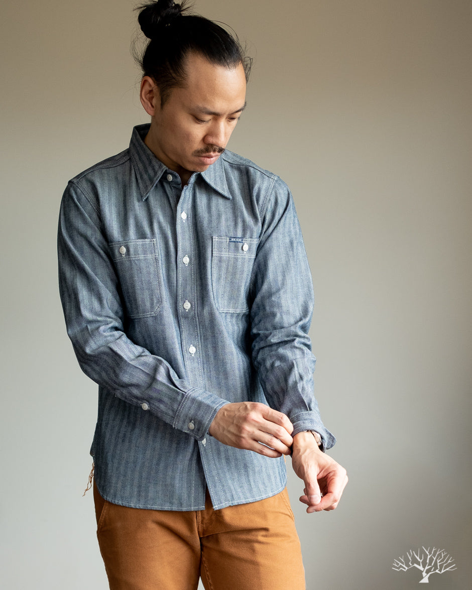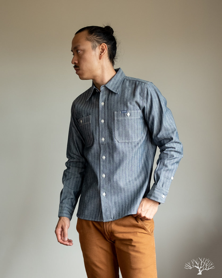 Iron Heart's classic work shirt in this beautiful indigo-dyed herringbone fabric. The IHSH-308-IND 12oz Herringbone Work Shirt starts off somewhat rigid with its dense and significant weight, but will soften up with wear and the indigo will start to fade. Given the weight, you will definitely be able to do actual "work" in these and not fear for tearing the shirt to threads. We're big fans of simple yet classic looks, and this is one staple to add to your lineup.