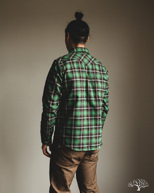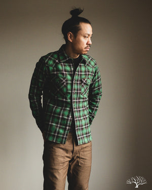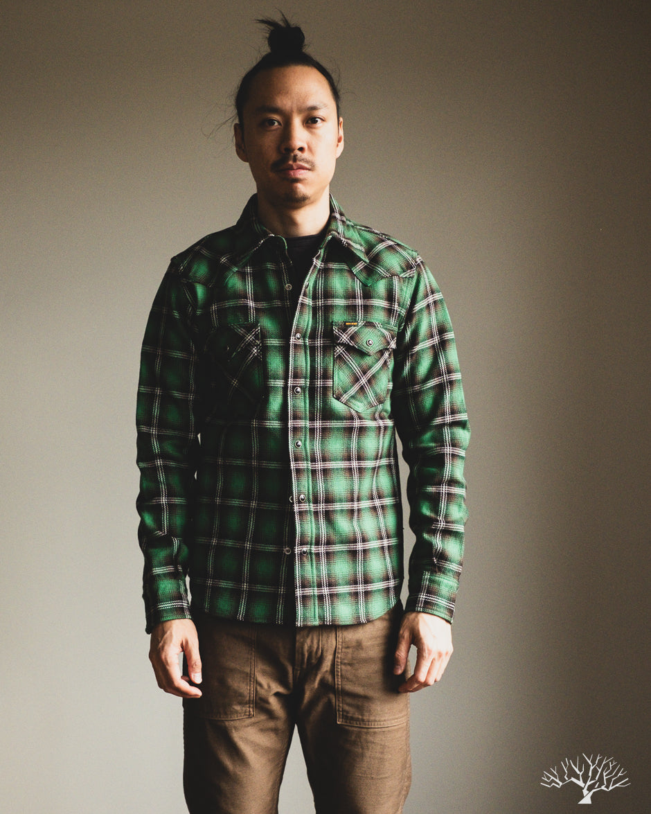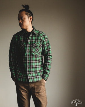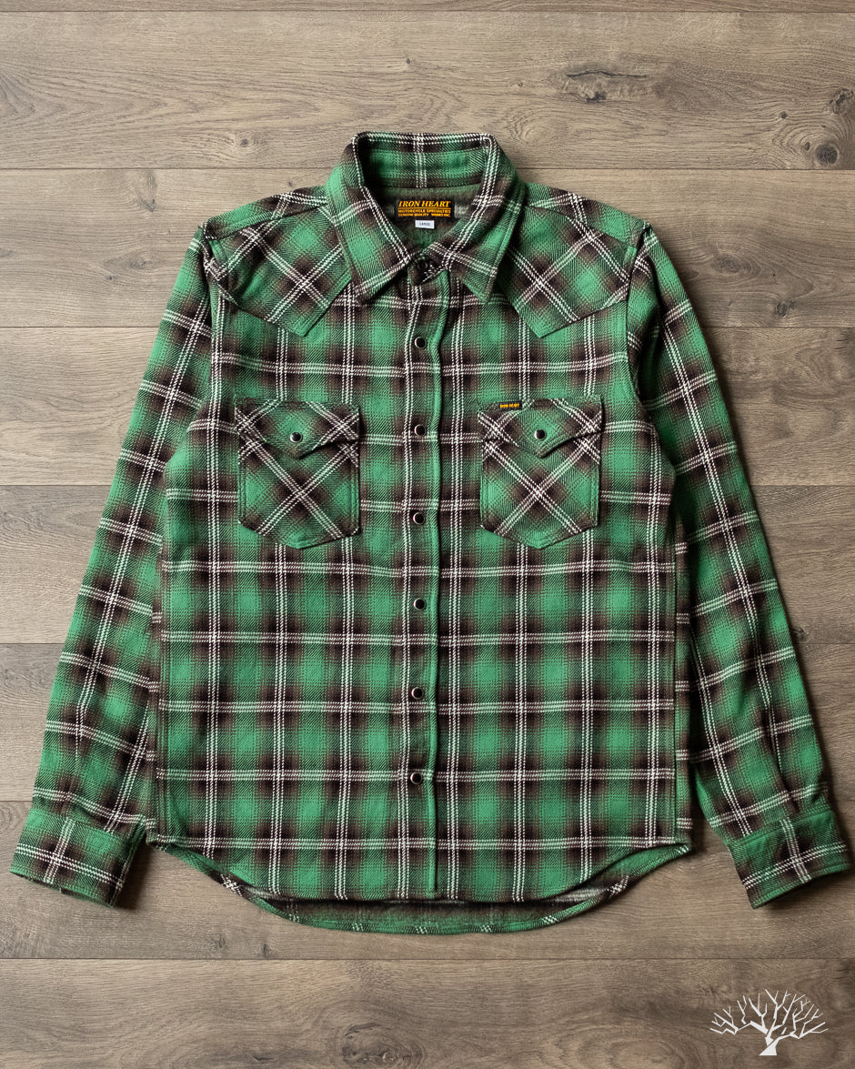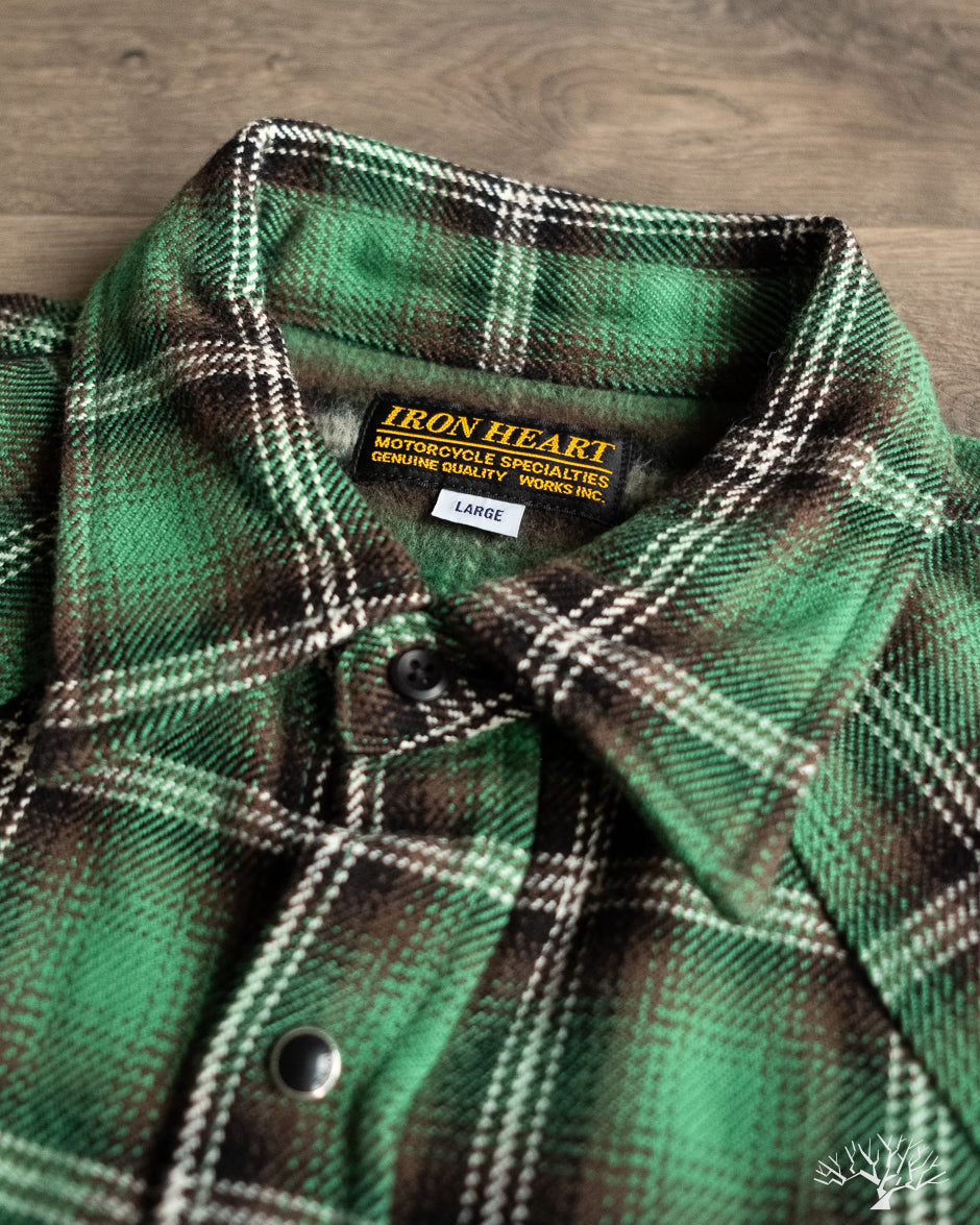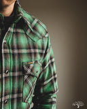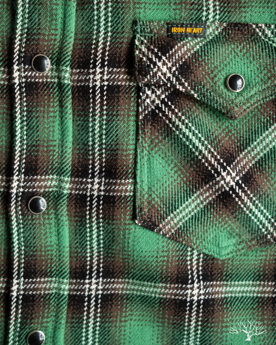 Iron Heart IHSH-405-GRN - Ultra Heavy Flannel Check Western Shirt - Green