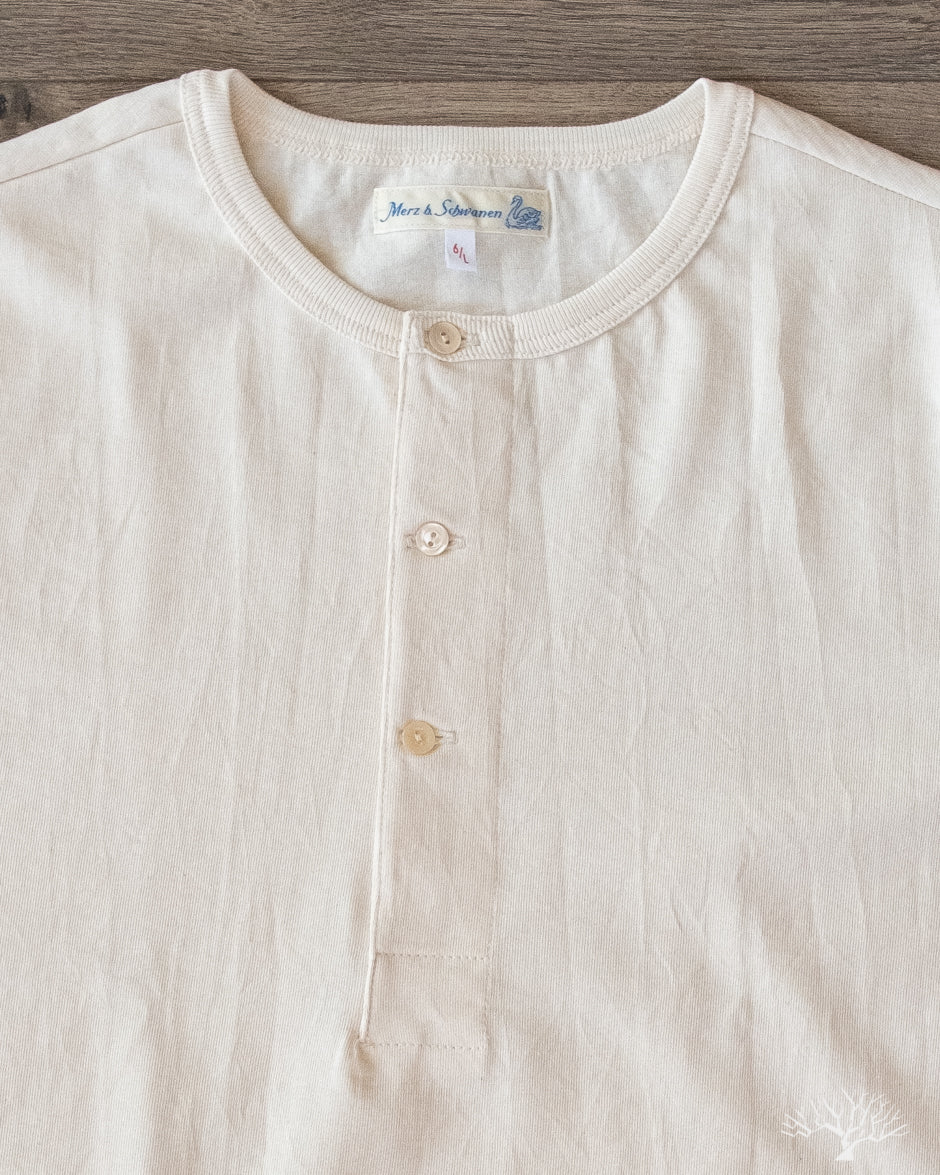 Merz B. Schwanen 207 Loopwheel Short Sleeve Henley - Nature