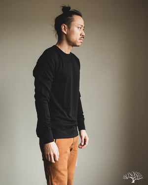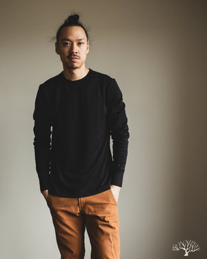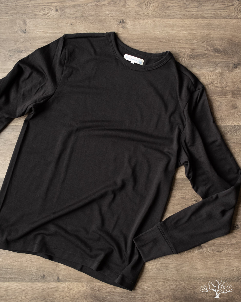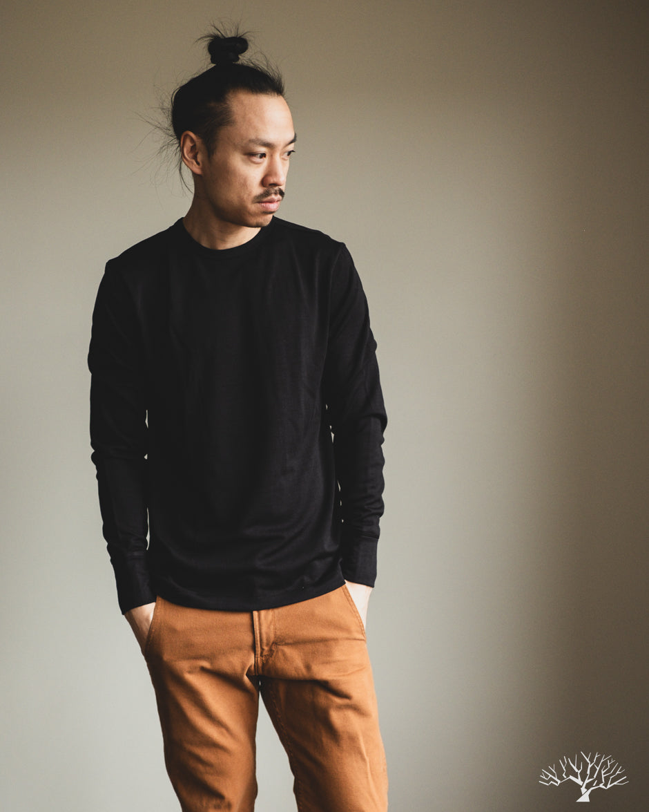 For a premium long-sleeve merino wool tee, Merz b. Schwanen's 2W15LS is the standout winner. Made on original loopwheeler machines, these are lightweight and airy, making these excellent for travel days or wherever life takes you. Breathable, moisture-wicking, temperature-regulating, and odor-resistant, these are pretty much the pinnacle of what a travel tee should be. As usual with Merz knits, it features a round crew neckline and a triangle insert under the armpit for maximum comfort. Made on original loopwheelers in Germany-one of two remaining loopwheeler operations in the world, the result is a seamless tubular fabric that will be your most comfortable tee.
