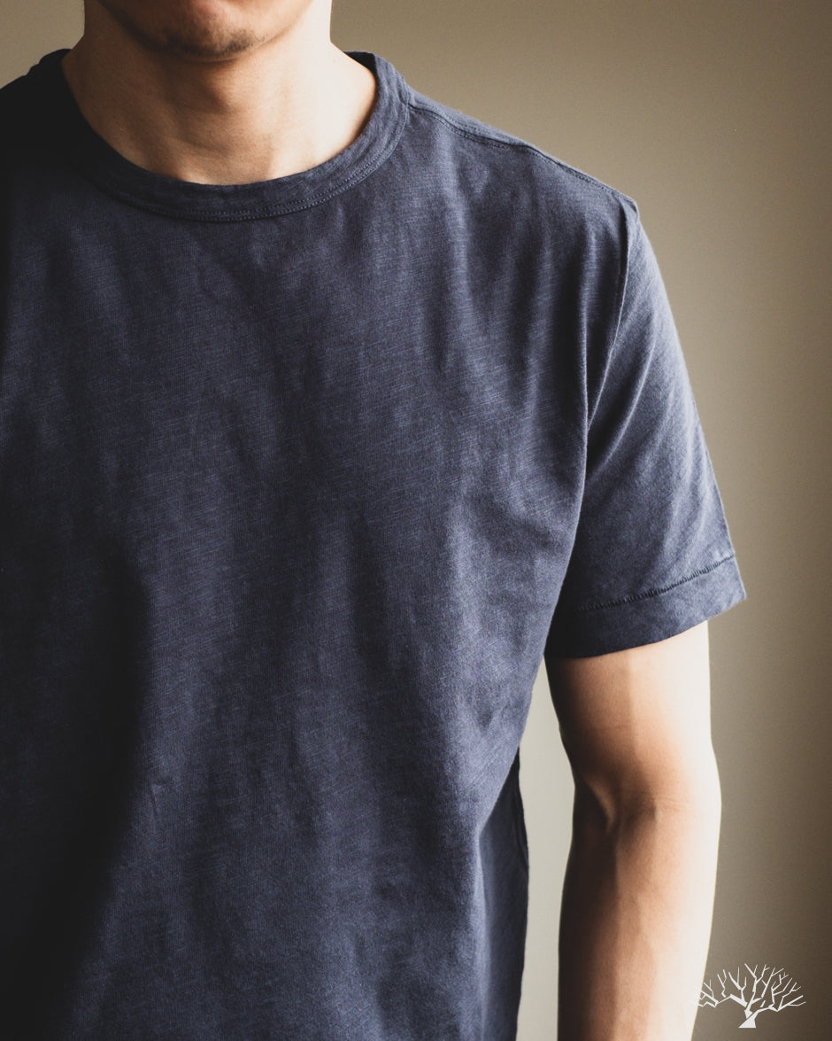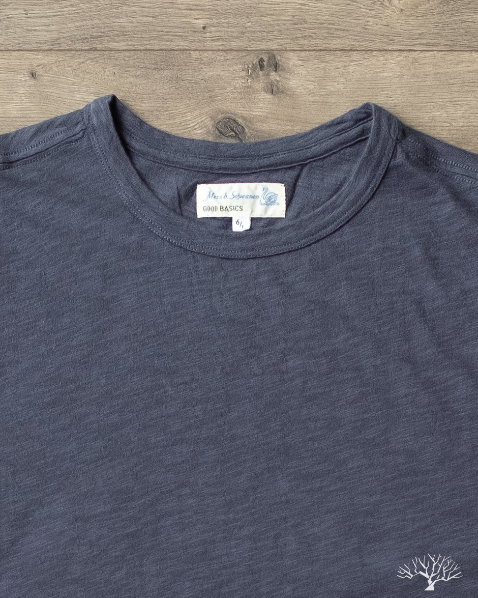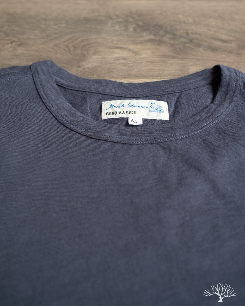 Enjoy this Slub Pima Cotton tee in a lovely Denim blue, from Merz b. Schwanen's Good Basics line. These relaxed fit tees have an excellent soft and casual look and feel with a bit of slub to the texture. The extra-long fibers due to the pima cotton results in a luxurious feeling tee. We brought these in for this specific reason, you won't regret trying it out.