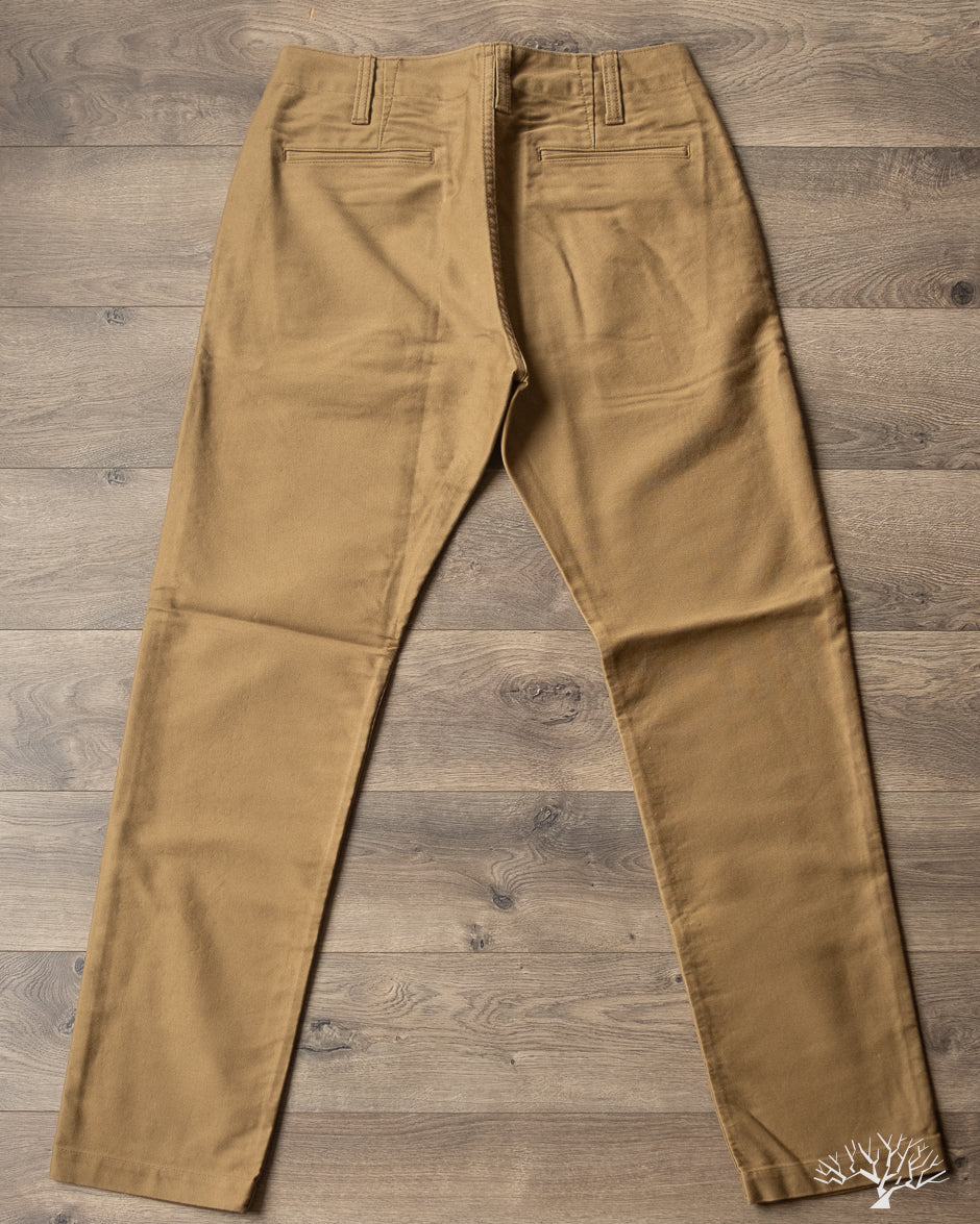 Note: We find these Moleskin Trousers to run large for their size. Please double check measurements to ensure the best fit; it might be possible that you take one or two sizes down from your typical pants size. These are one-washed and dried, so no further shrinkage expected; however, on high heat and longer periods of machine dry it's possible these will shrink another 1/2 size. We recommend machine wash and hang-dry to avoid any further shrinkage.