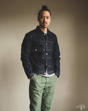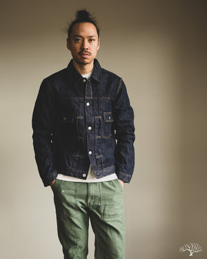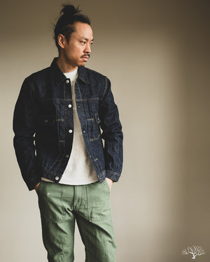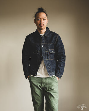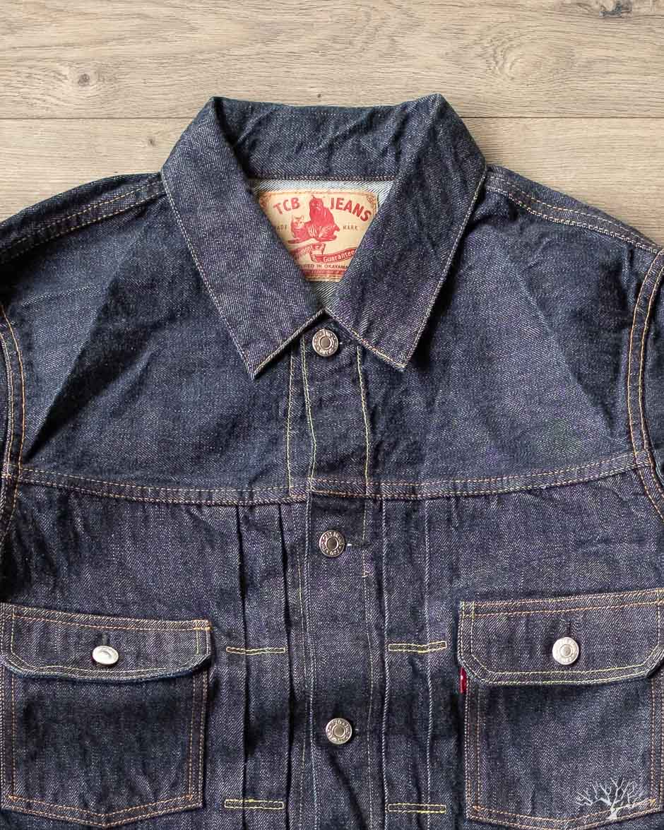 TCB New 50's Jacket is their reproduction of a classic Levi's Type 2 Denim Jacket. Using a medium weight 13.5oz Zimbabwe cotton fabric, this custom woven TCB fabric has an irregular texture and a slight nep, which will lead to beautiful vertical fades with time. The paper patch gives it an authentic vintage feel, that will ultimately break down and reveal the dark indigo denim underneath it.