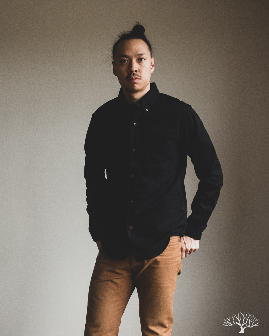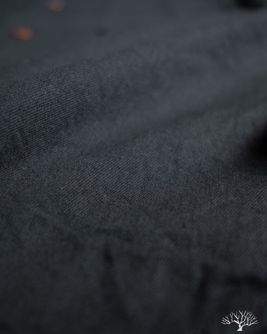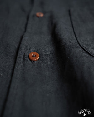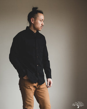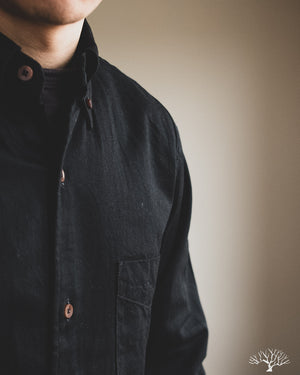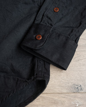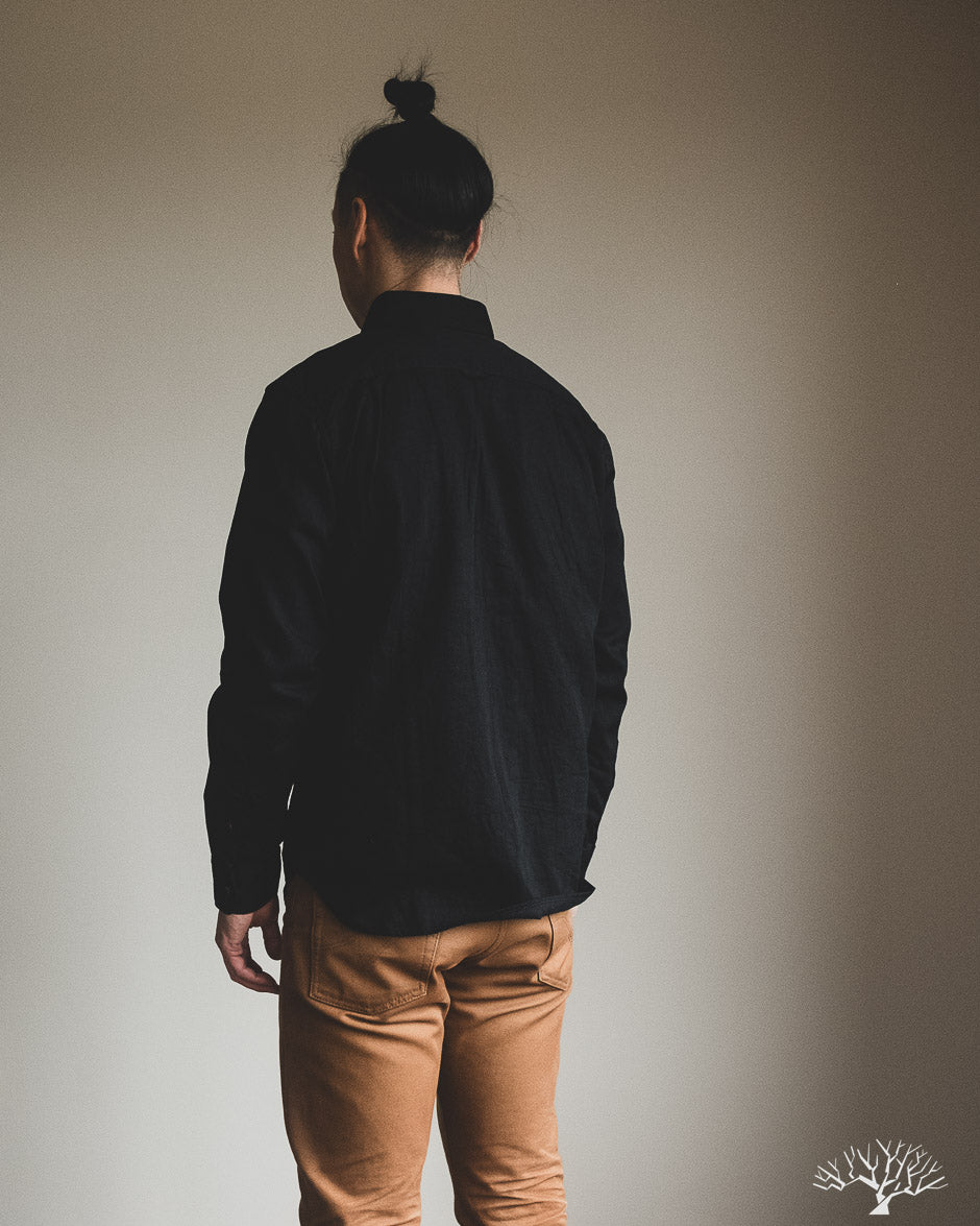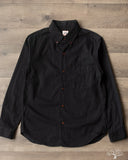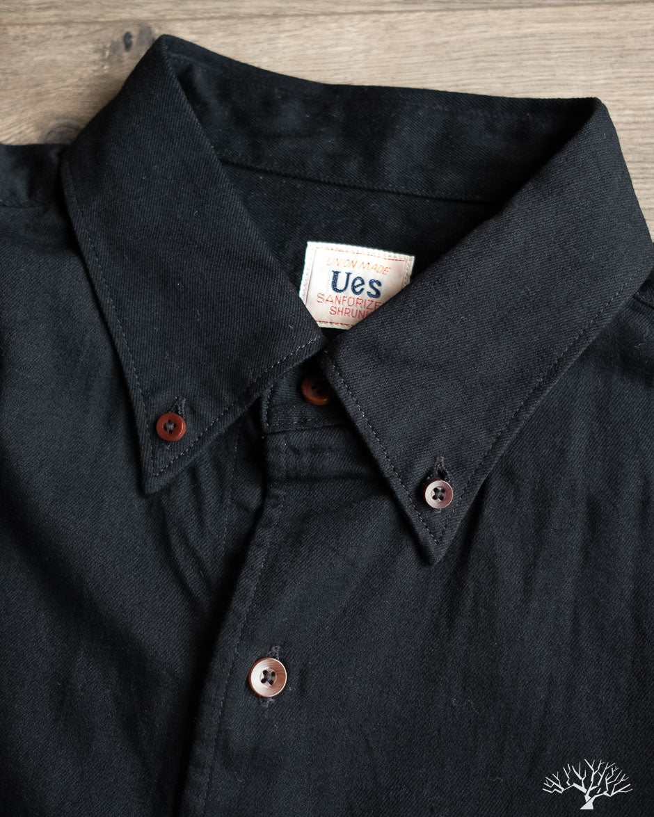 The UES 6oz Button-Down Shirt is no-frills lightweight black shirt that can easily transition between work and play - a versatile shirt that drapes well and soft on the body. The shirt comes in their classic button-down pattern with a single chest pocket and button-down collars. A slightly refined and tailored shirt relative to their otherwise more rugged / casual offerings. This shirt is sulphur-dyed, so it will fade to a grey with wear.