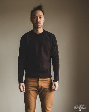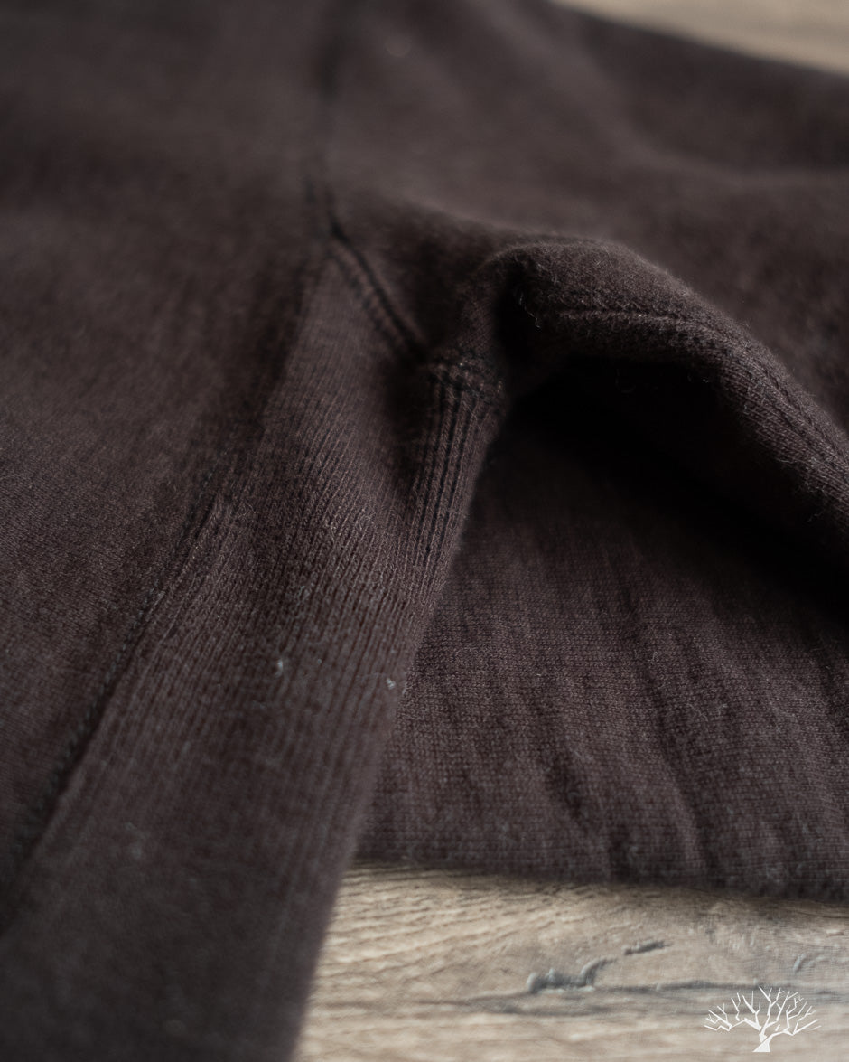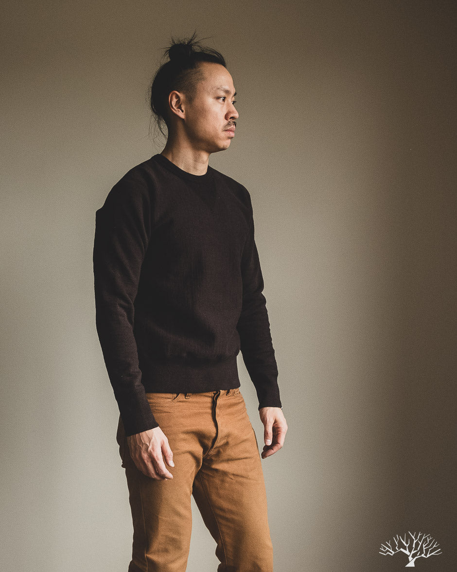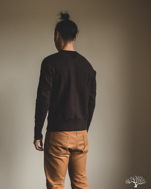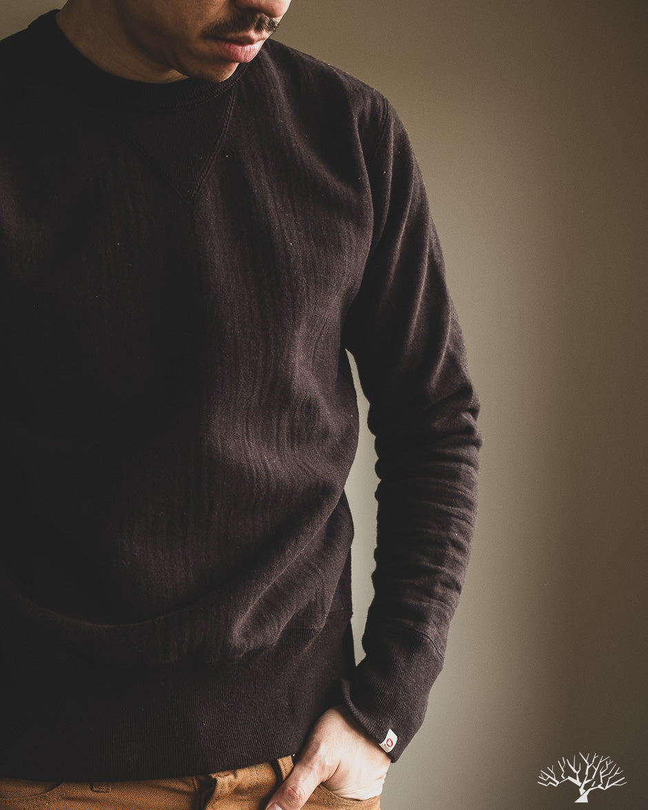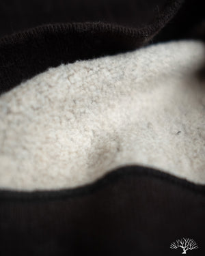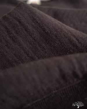 The UES New Purcara Sweatshirt (70RW-DU) is the replacement for the retiring Puca Purcara Sweatshirts. This Black sweatshirt is made from a blend of desi cotton and organic Ugandan cotton for the same hefty-warm wool-like texture. Additionally, the interior lining is made from a brown Zimbabwe cotton. Much like many of UES' fabrics, these have a truly unique appearance and texture.