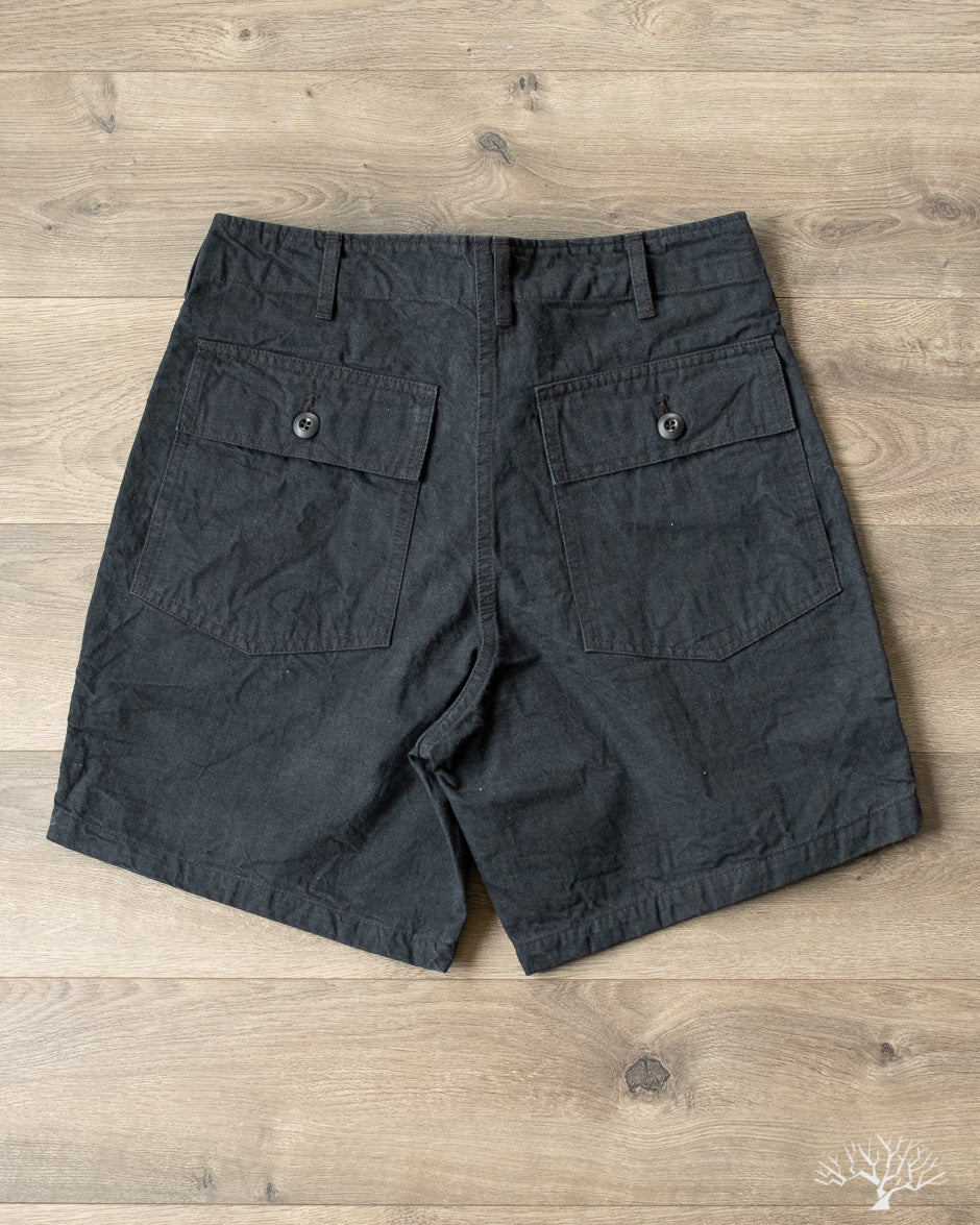 UES Fatigue Shorts can be your go-to pair this summer. Cut with a relatively short inseam (7") but with a decent rise, these will be comfortably fly for everyday wear. Much like UES' other shorts, these will fade and wear in like denim with its sulphur-dyed fabric. Two front and two back pockets round out this ideal pair of shorts.