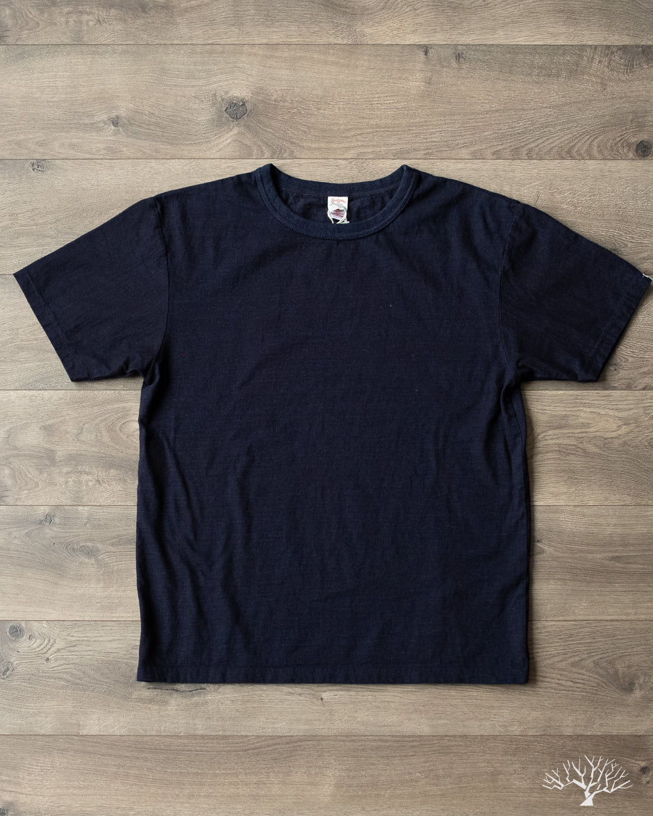 The UES No. 16 Yarn-Dyed Indigo T-Shirt is a relatively lighter-weight jersey-knit t-shirt compared to their other offerings. This indigo t-shirt uses indigo rope-dyed yarn that produces a deep indigo color that will fade and age beautifully. Relative to UES' other t-shirt offerings, this has a hand and feel that is closer to the Ramayana T-Shirts with a more smooth, jersey-knit feel. The No. 16 yarn used is about half the thickness of the No. 7 yarn, making this a nice lighter-weight t-shirt that has a bit of stretchiness, perfect for the warmer seasons of the year.