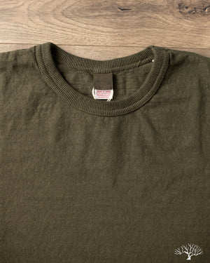 The UES No. 8 Slub Nep Long-Sleeve Tee in Green. This long-sleeved version features the same thick fabric with incredible slub and texture as the short-sleeved versions. Clocking in at 9.5oz, these are a solid heavyweight basic that you can rely on. Sleeves are cut with generous room throughout.