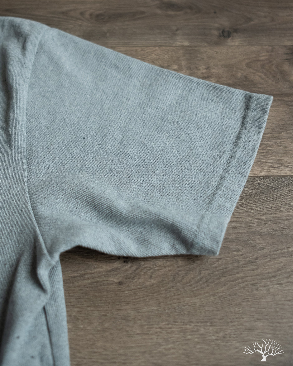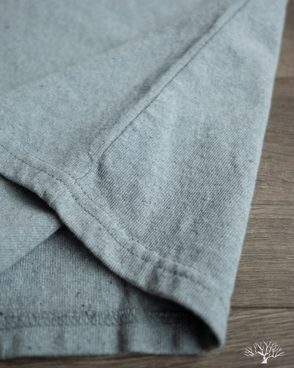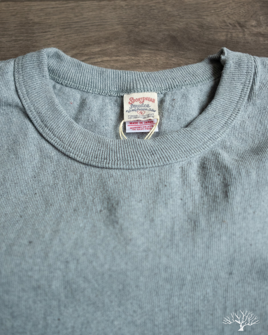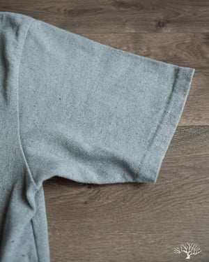 The UES Recycled Denim T-Shirt in Sax Blue is a newer style featuring recycled denim yarn from Ferree in Spain. The result is a heathered light indigo appearance that is similar in weight to their flagship No. 8 Slub T-Shirt, but with slightly less slub and a softer, fuzzier hand. Note that these t-shirts are more prone to fade and change in color when exposed to sunlight; to minimize this change, UES recommend storing away from direct sunlight.