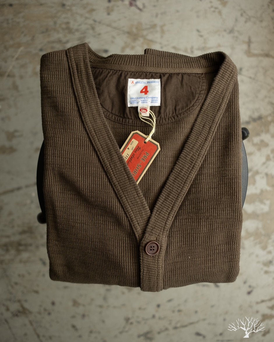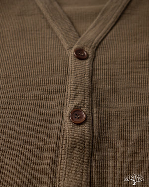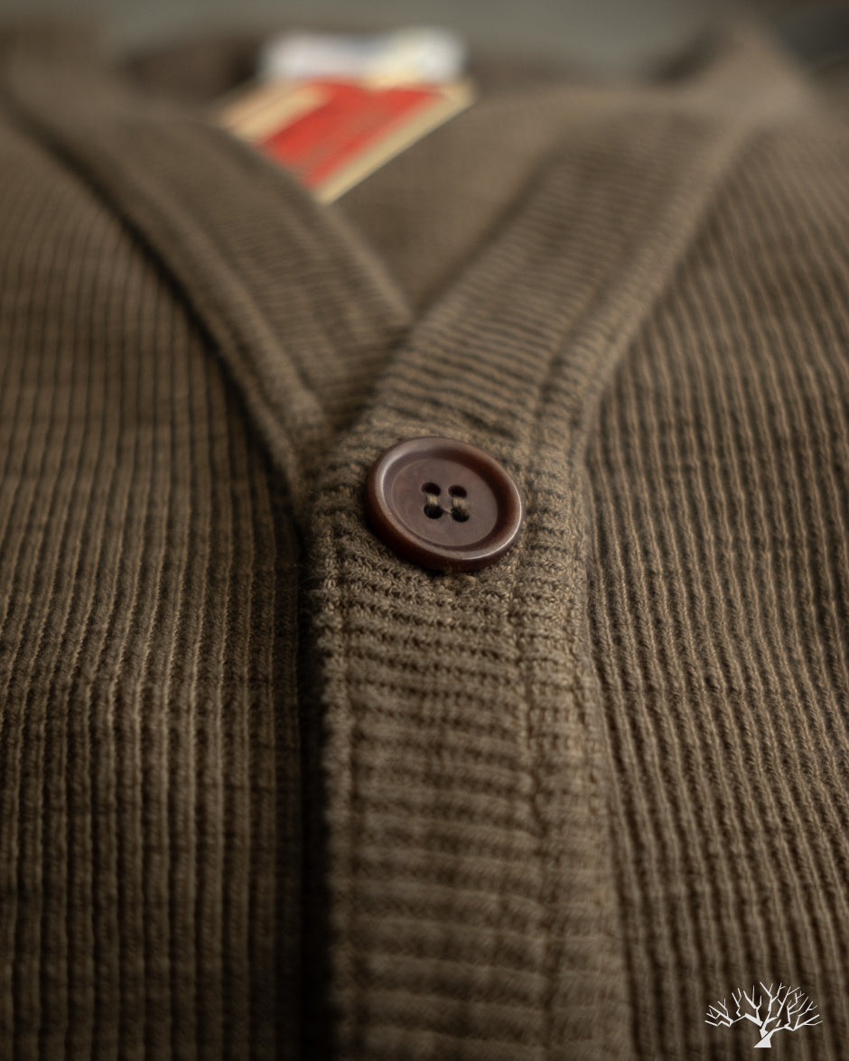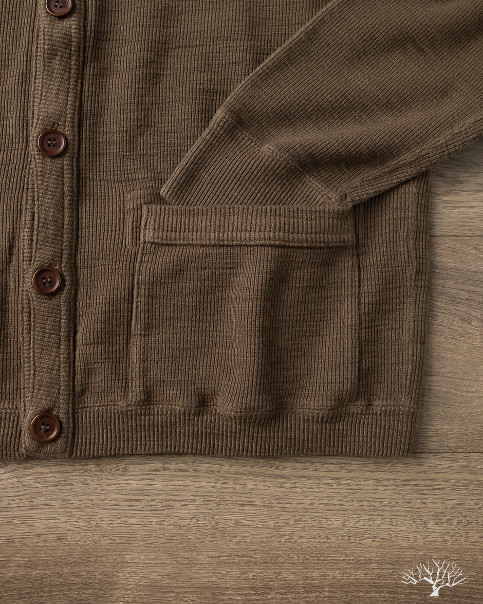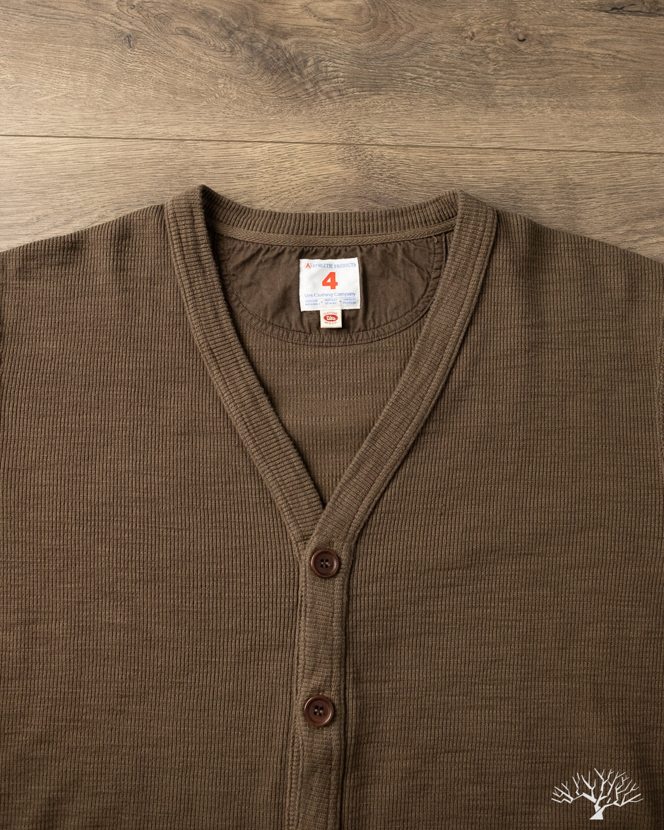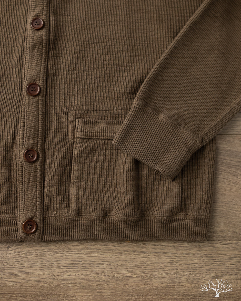 The UES Single Rib Cardigan in Olive is an 11.8oz 100% cotton cardigan that is minimalist and wears well. These cardigans have a nice soft yet sturdy drape well and are an excellent pick for a solid color cardigan with no fancy extras. Sure there is a time and place for the dazzled and frazzled cardigans, but we love these for its simplicity. Plus, being made of all cotton, you won't have to worry about washing and caring for this piece.