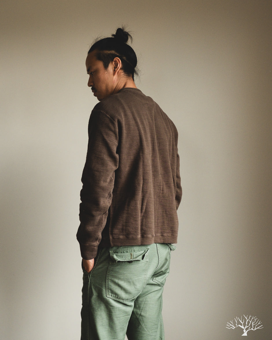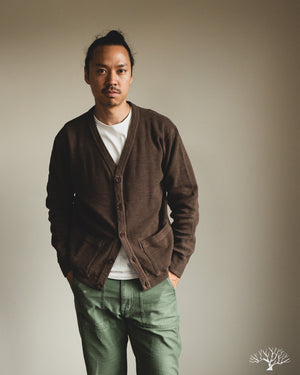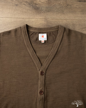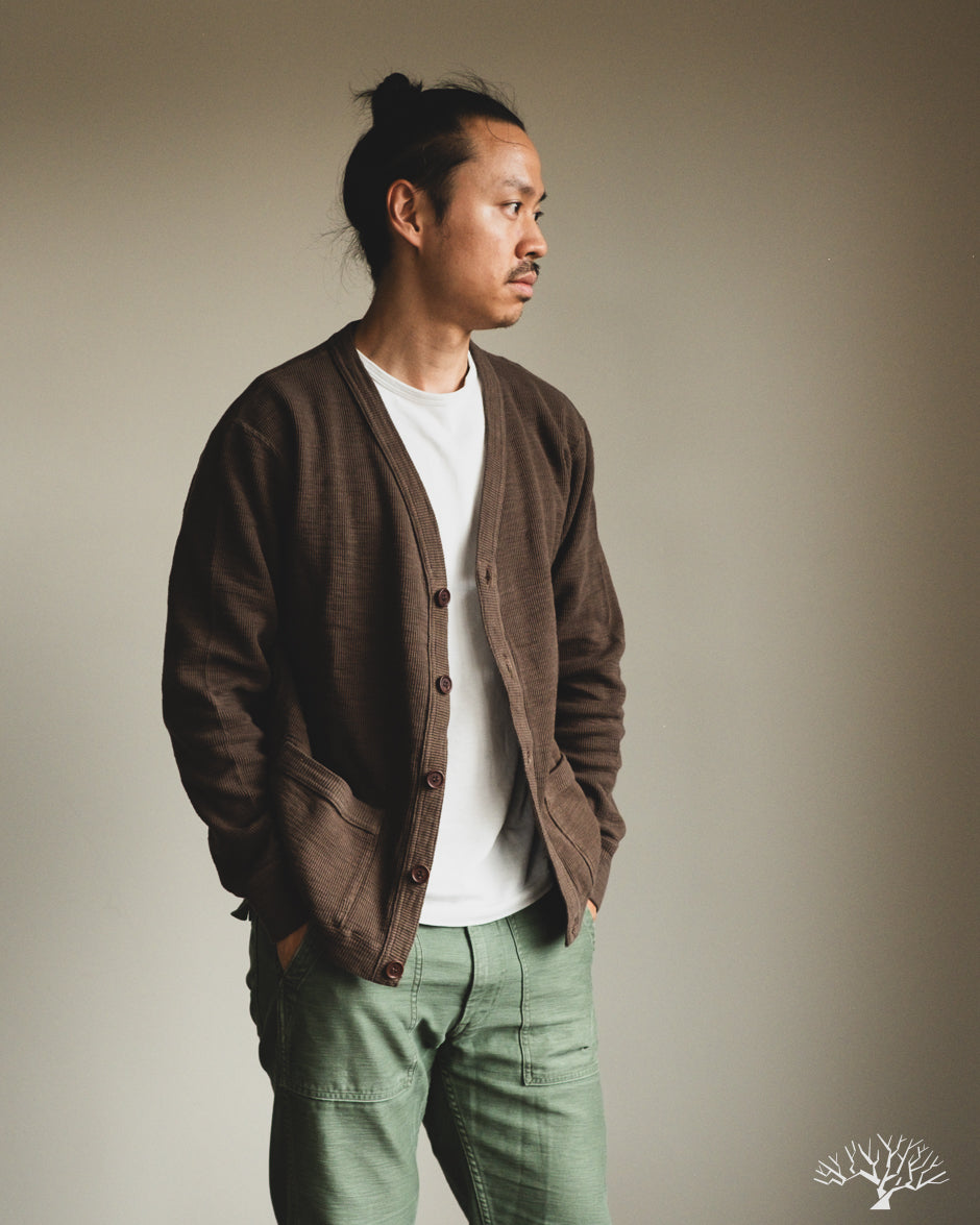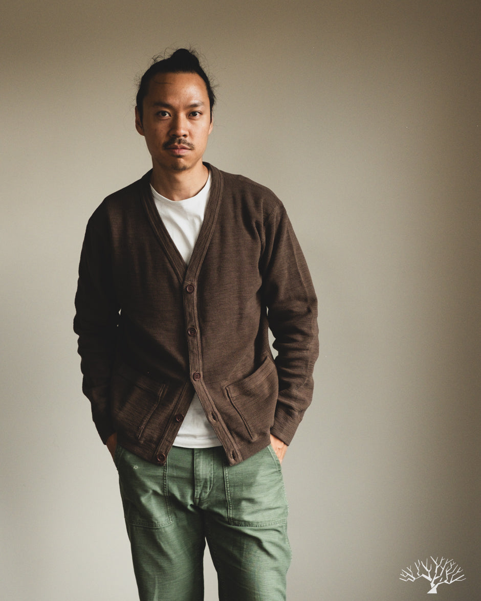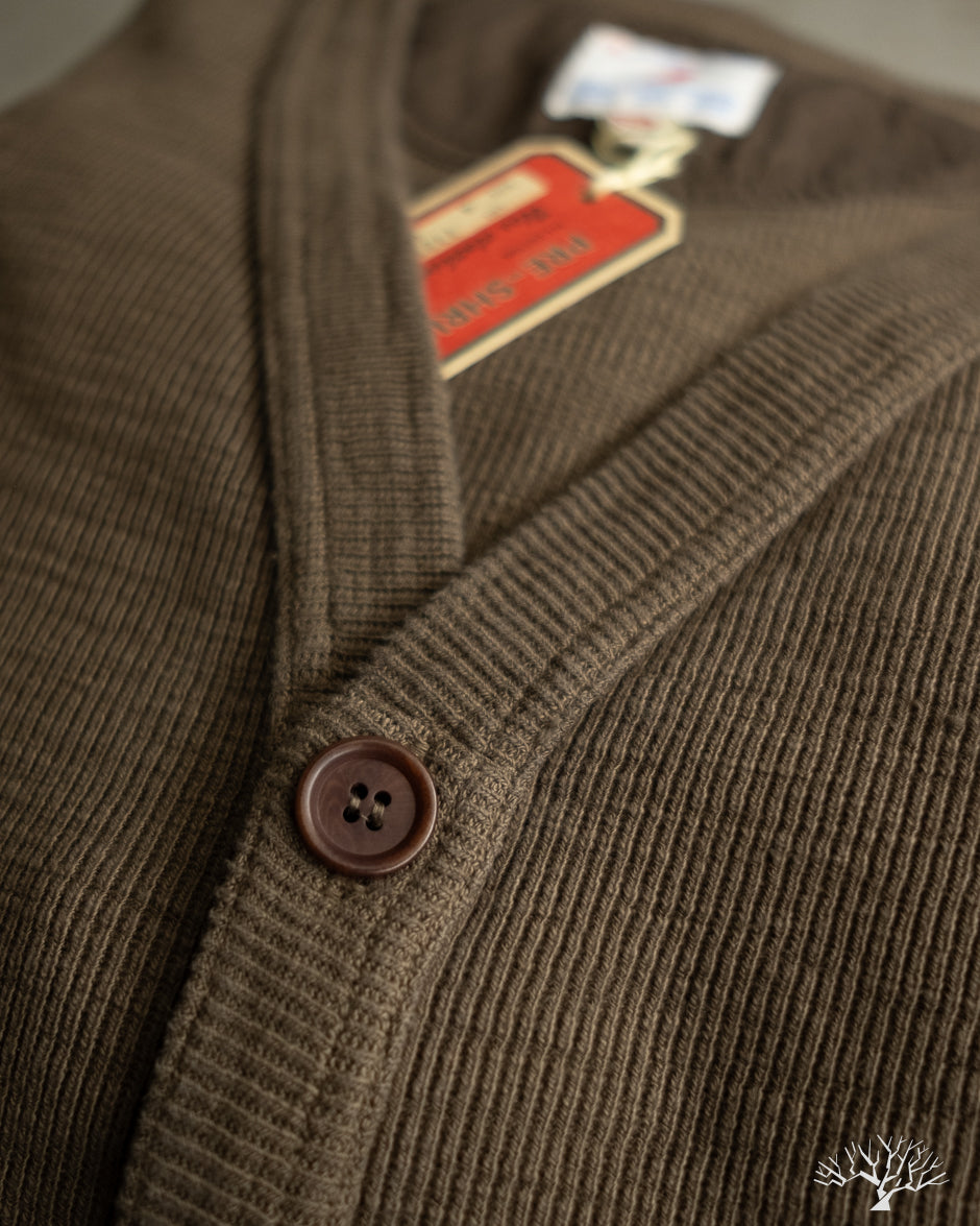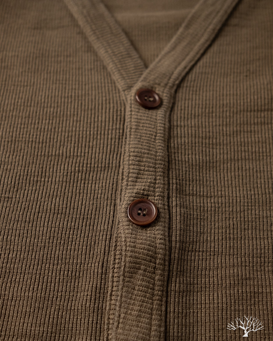 The UES Single Rib Cardigan in Olive is an 11.8oz 100% cotton cardigan that is minimalist and wears well. These cardigans have a nice soft yet sturdy drape well and are an excellent pick for a solid color cardigan with no fancy extras. Sure there is a time and place for the dazzled and frazzled cardigans, but we love these for its simplicity. Plus, being made of all cotton, you won't have to worry about washing and caring for this piece.