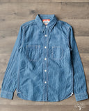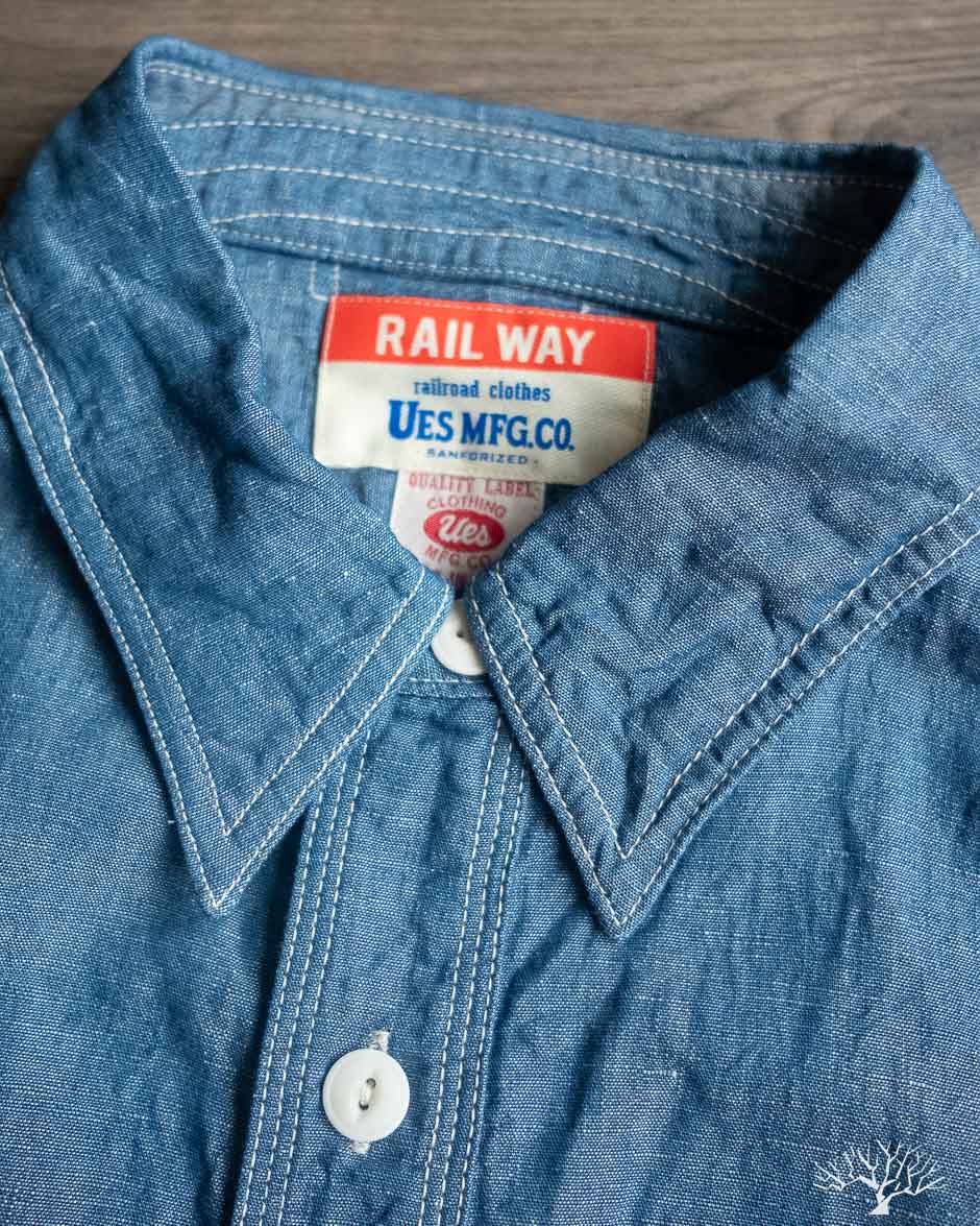 This UES Chambray Work Shirt comes in a custom cotton-linen blend that is perfect for as a versatile button-up shirt. Made from a 60/40 cotton-linen blend, these have a slight crisp texture due to the linen, but maintains a nice drape and softness with the cotton. Notably, UES uses slightly larger buttons for more unique appearance amongst a sea of chambrays.