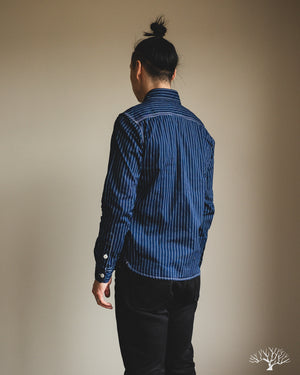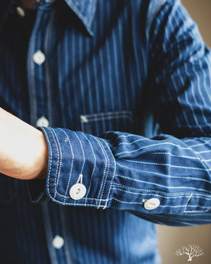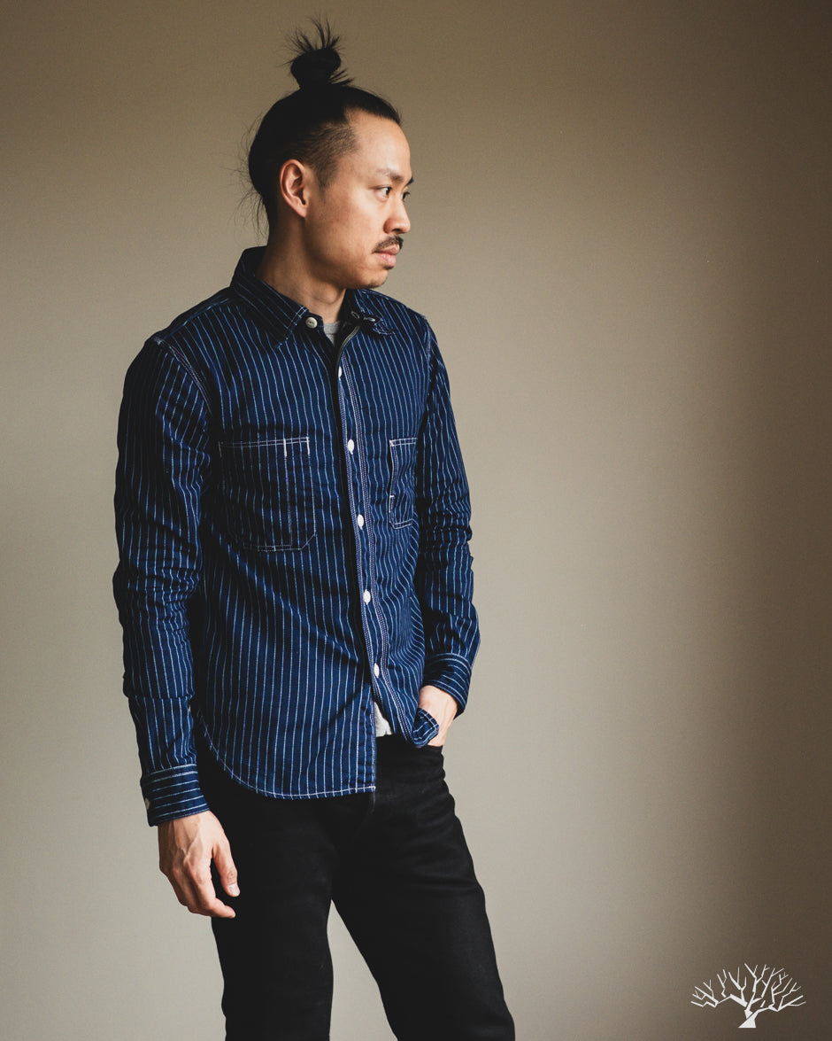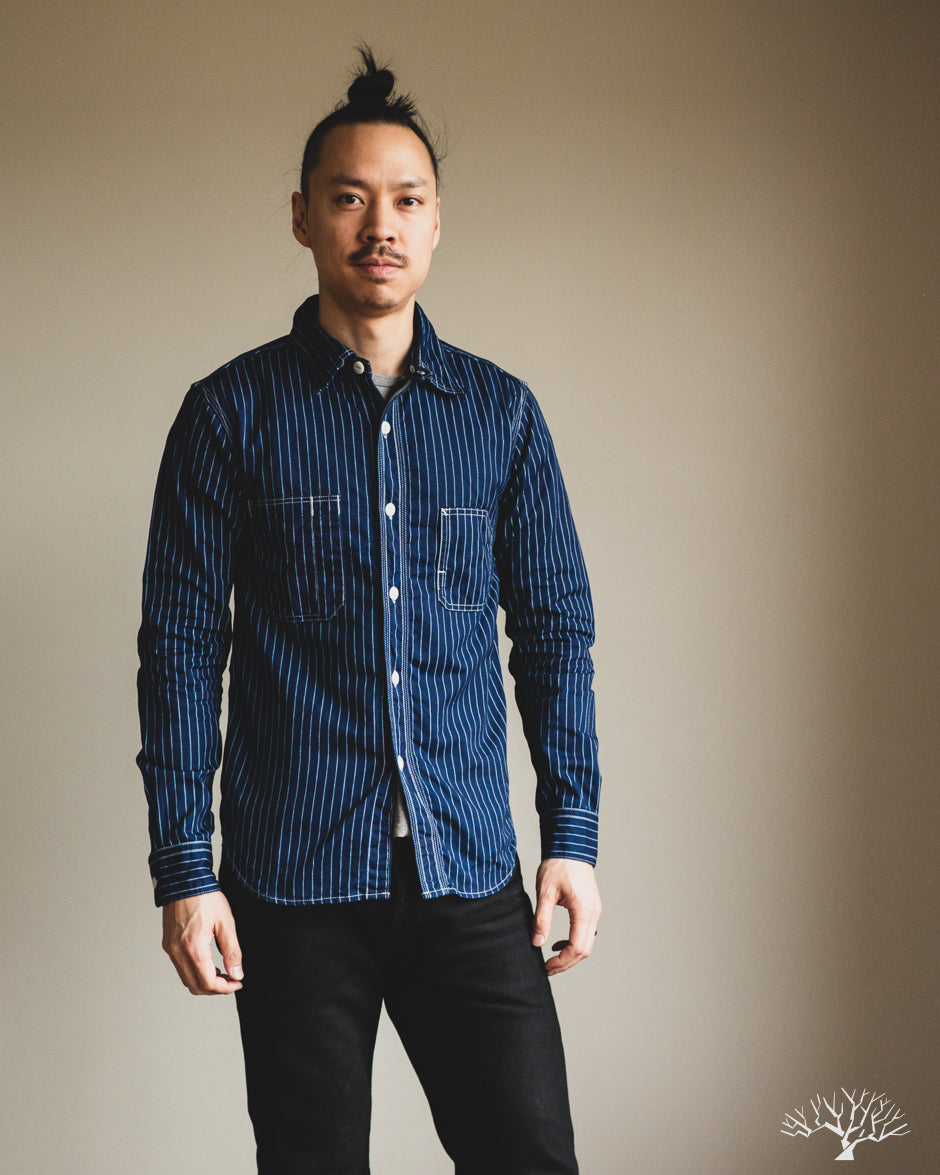 The UES Wabash Work Shirt is a solidly constructed classic work shirt. Cut in a slim silhouette, the shirt features triple-needle side stitches and two asymmetrical chest pockets. While the Wabash Work Shirt starts off in a nice dark indigo color, it will quickly fade and wear to a light sky blue with wear and washes. This is a solid mid-weight shirt that isn't super heavy, allowing this to be worn year-round.