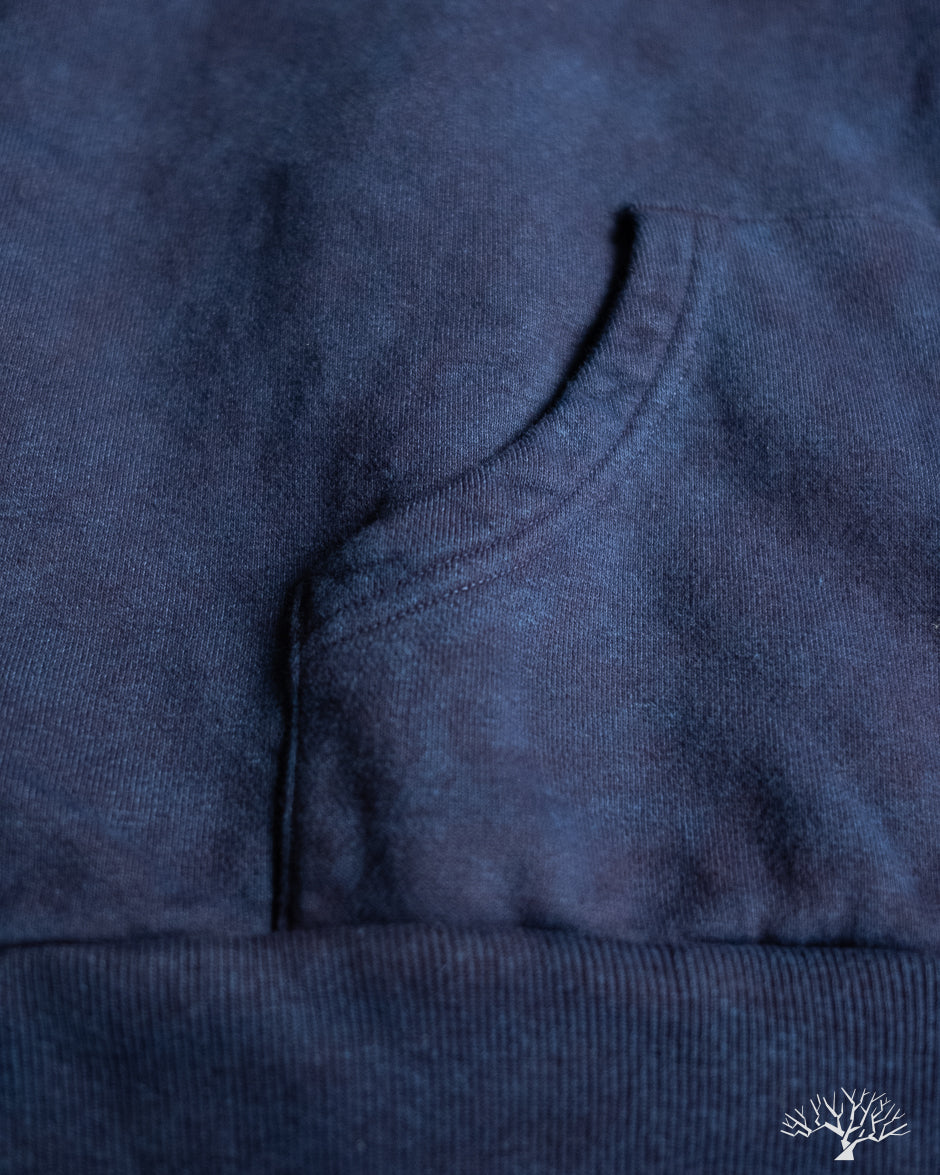 The UES Zip Hoodie (Parka) in Indigo is a solid heavyweight fleece that has been garment dyed and washed to give it an uneven indigo surface that will fade with wear. These indigo-dyed hoodies are new for this year and have a much more inky and inconsistent indigo appearance throughout, a bit of wabisabi if you will. For indigo-enthusiasts, these are about as good as you can get for a zip hoodie.