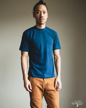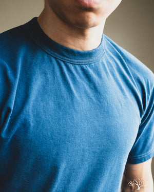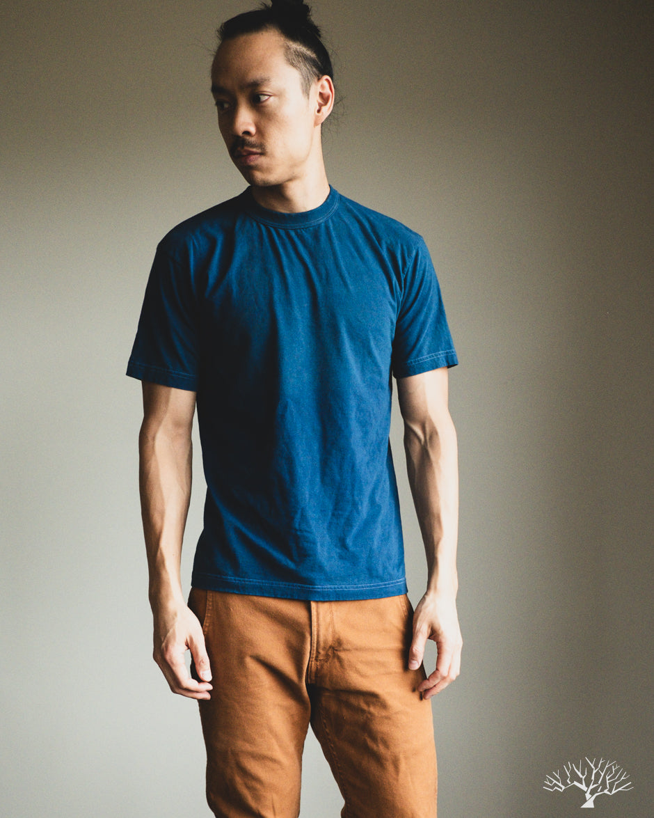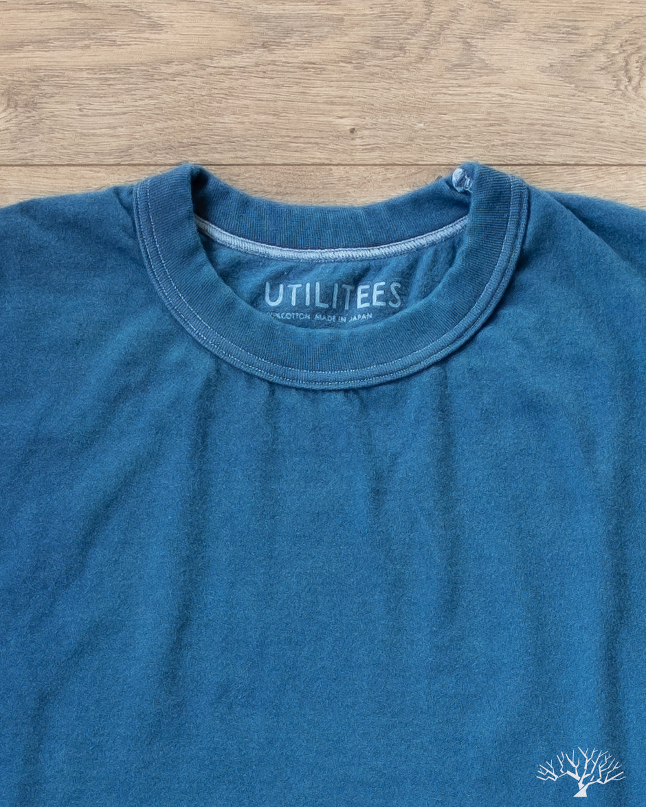 UTILITEES 5.5oz loopwheel crew neck t-shirt in Pure Indigo is made from 100% combed cotton yarn for a soft, silky, comfy feel. These can be worn for a slim-fitted look as a base layer, or also as a more relaxed tee if you're just looking for a nice lightweight t-shirt. These UTILITEES are knitted on old loopwheeler machines in Wakayama, Japan.