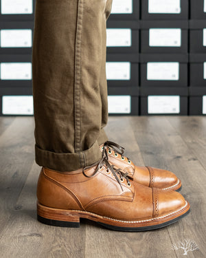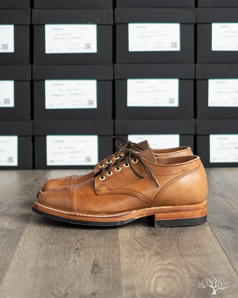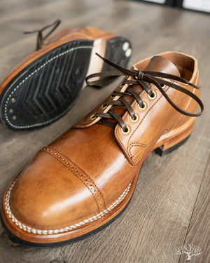 The last of its kind, the Crust (Toscanello) Horsebutt Oxford returns in a second - and final - iteration of the original Viberg Franklin 145 Oxford. With this pair, we've utilized Maryam's Toscanello Horsebutt, which is their version of Horween's Crust Horsebutt, and altered the sole to have a Vibram 705 Tygum Rubber Half Sole. Otherwise, all the other details are the same. These come freshly polished from the factory with Venetian Shoe Cream for a deeper and richer appearance from the start.